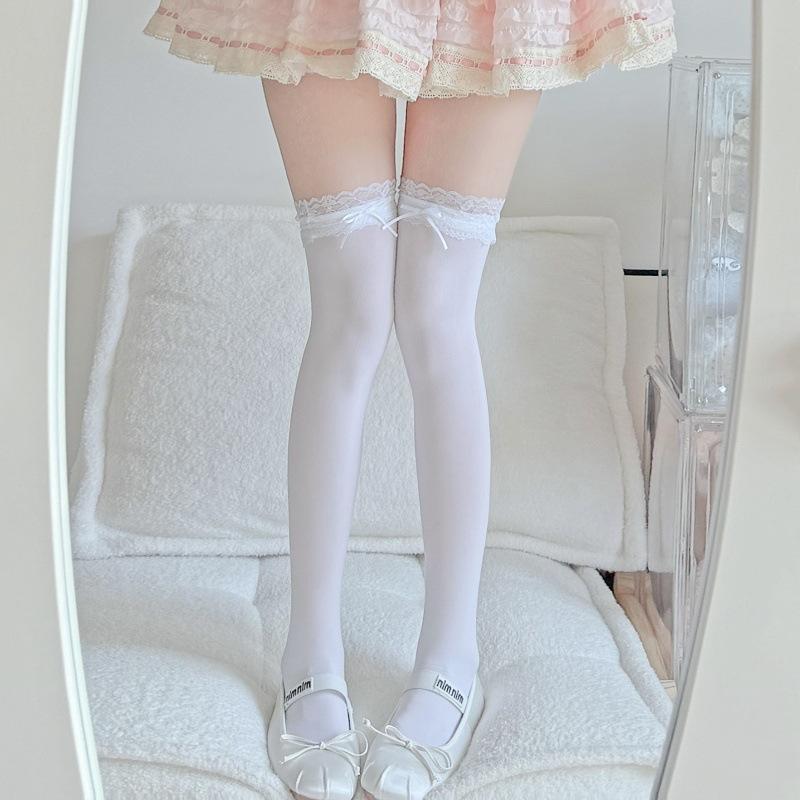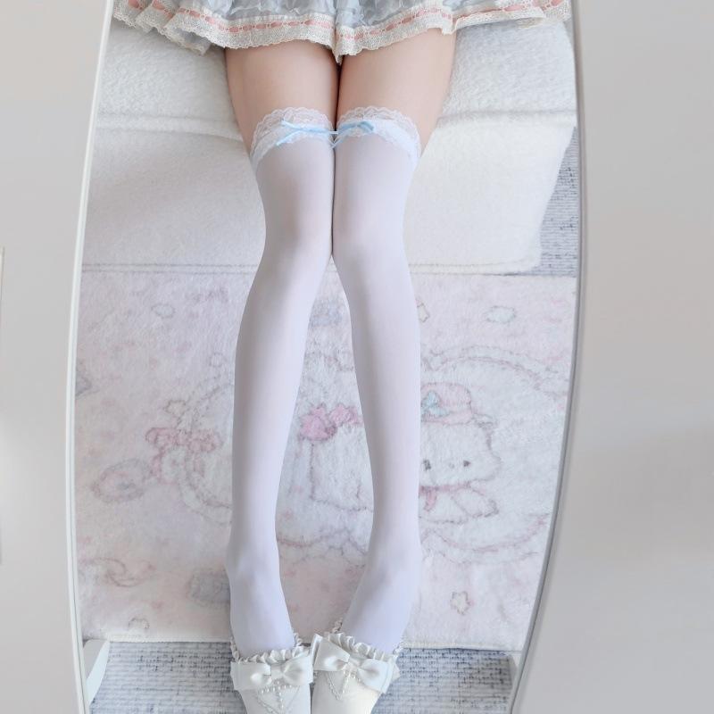 Meias Até o Joelho de Renda Estilo Japonês Jk com Laço de Fita de Borda de Renda Versátil Brancas Meias de Renda para Coxa