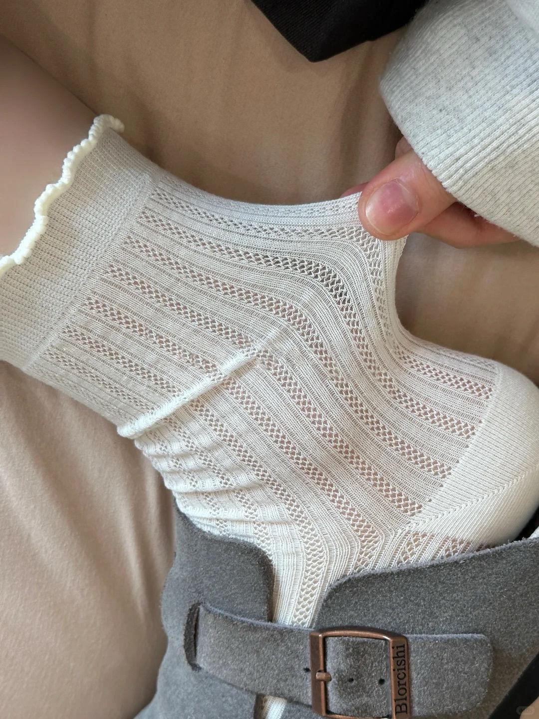Compre Meias Longas de Verão Finas de Malha Vazada Respiráveis para Mulheres, Meias Folgadas, Estilo Coreano Ins Modernas Cor Sólida Versátil Meias de Cano Médio no atacado no Joom.pro