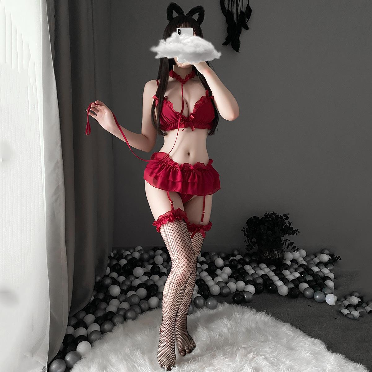 Compre Chaomu Lingerie Sexy Feminina Tentação Sexy Ligas Renda Chiffon Conjunto Três Pontos Paixão Livre Pijama no atacado no Joom.pro