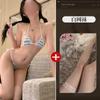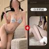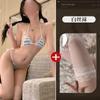 Pijama feminino sexy listrado de três pontas com abertura na ponta, sutiã, roupa íntima sexy, tentação de cama, meias sensuais