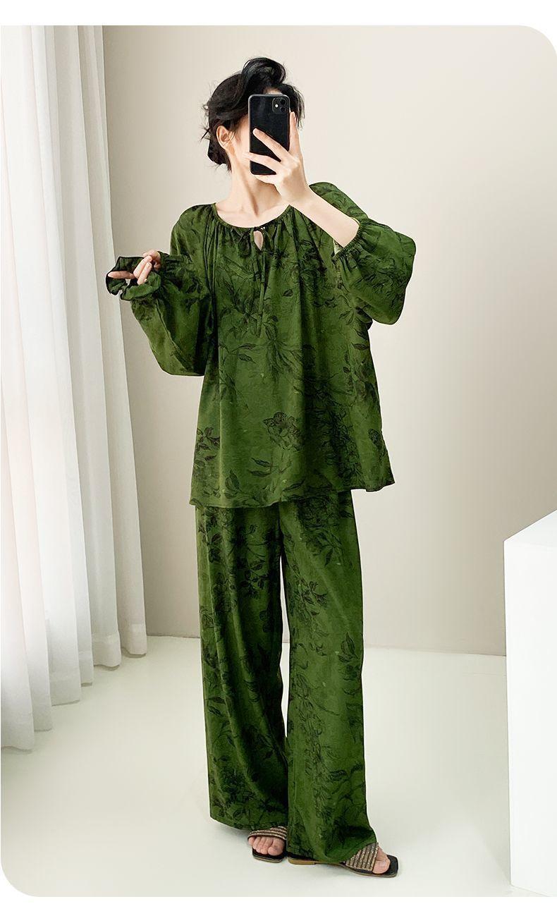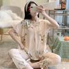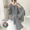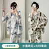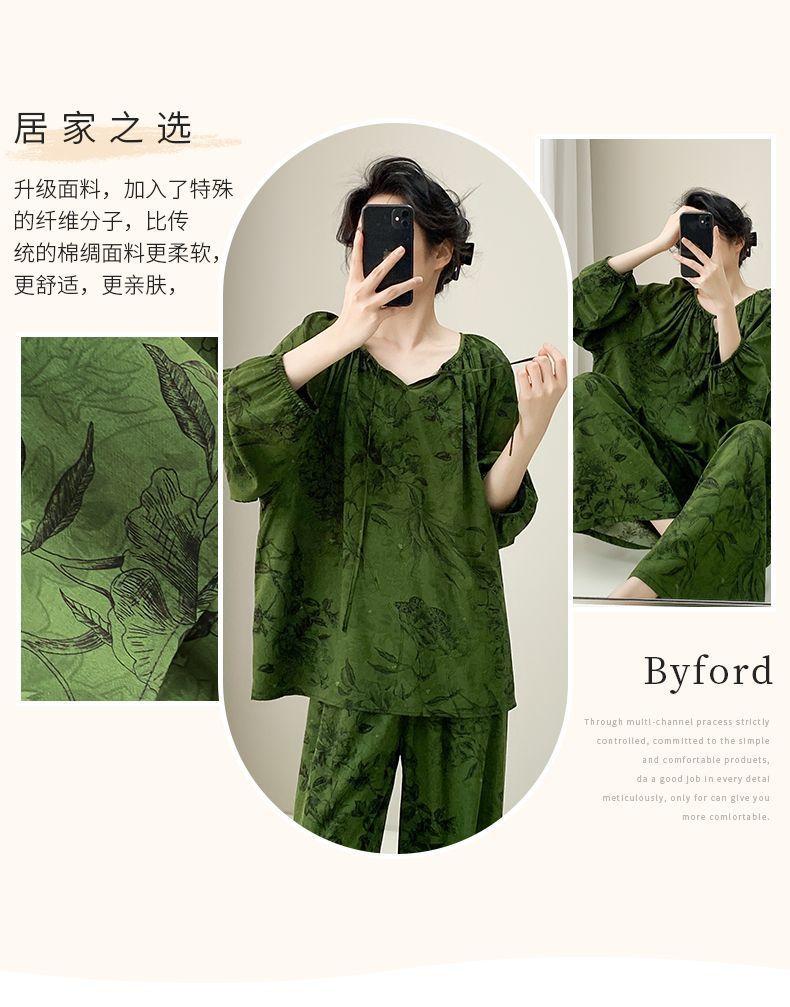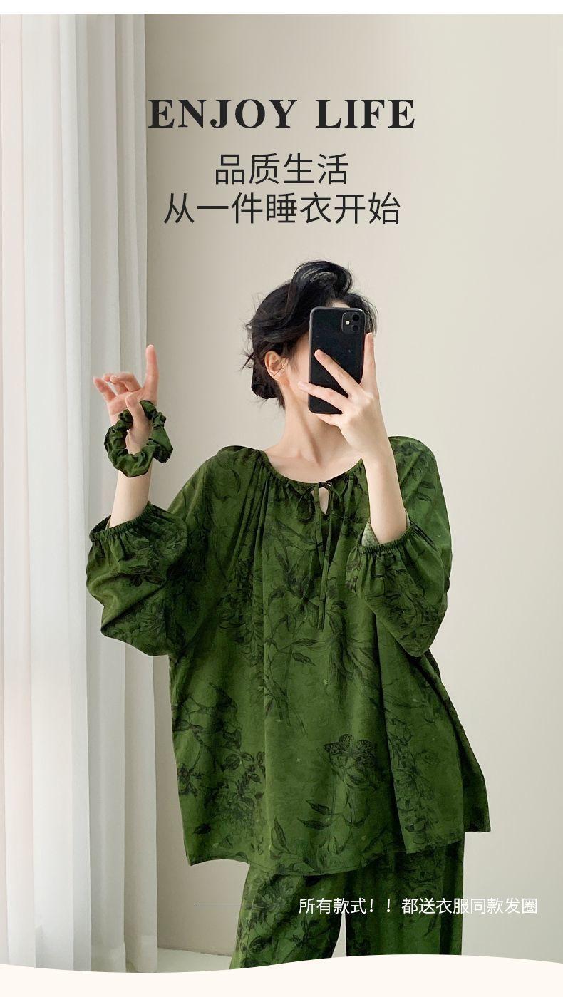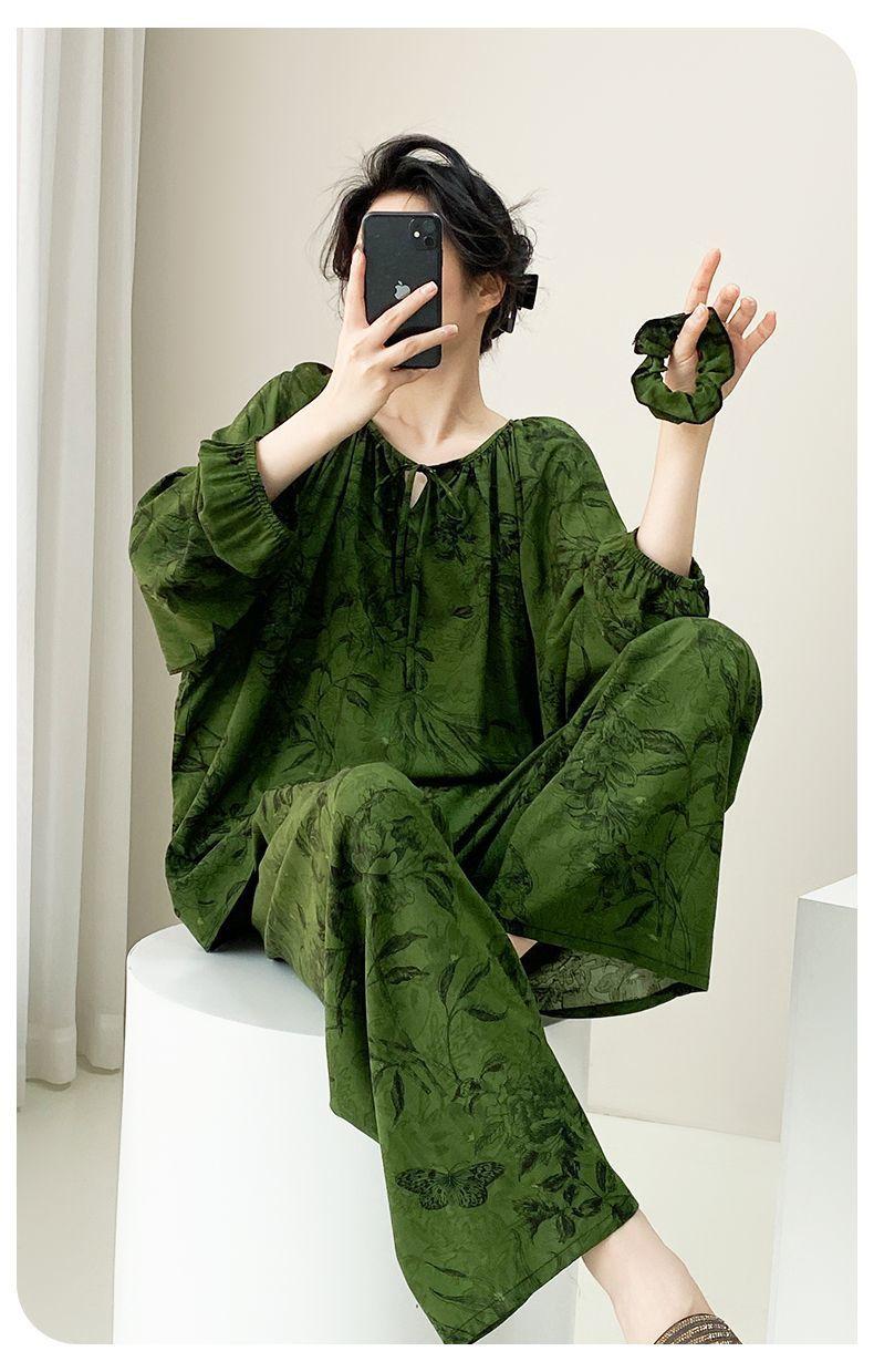Grande Promoção Pijama de Algodão Seda para Mulheres Verão Manga Comprida Conjunto de Algodão Seda Feminino Tamanho Grande Verão Meninas Algodão Seda Roupa de Casa Seção Fina