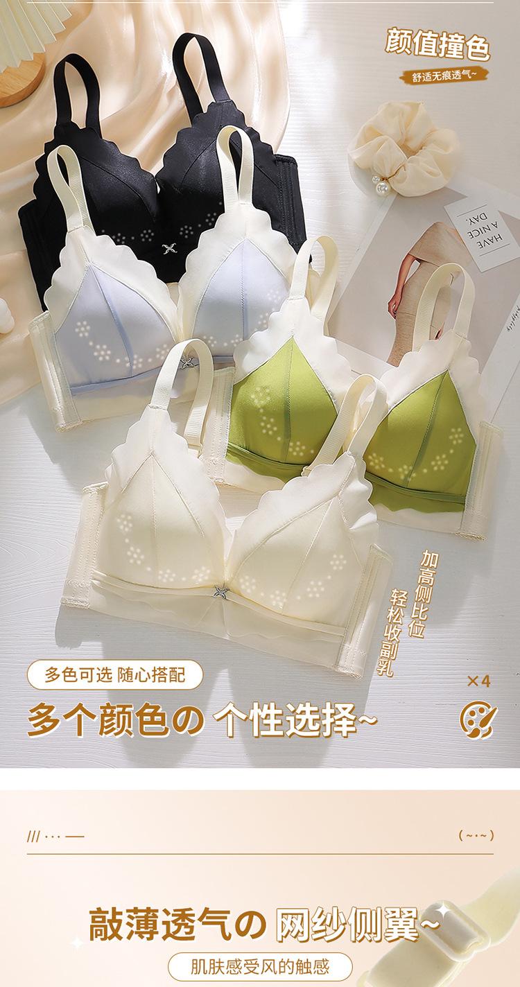 Gather, Traceless, Breathable, Push up, Beautiful back, Absorb sweat, Adjustable type, Comfortable, Side colle...