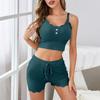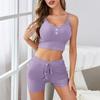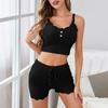 Terno Casual de Cor Sólida Quente Mais Vendido Europeu e Americano Transfronteiriço Regata de Fio Fino Shorts Sexy Slim Roupa de Casa Pijama
