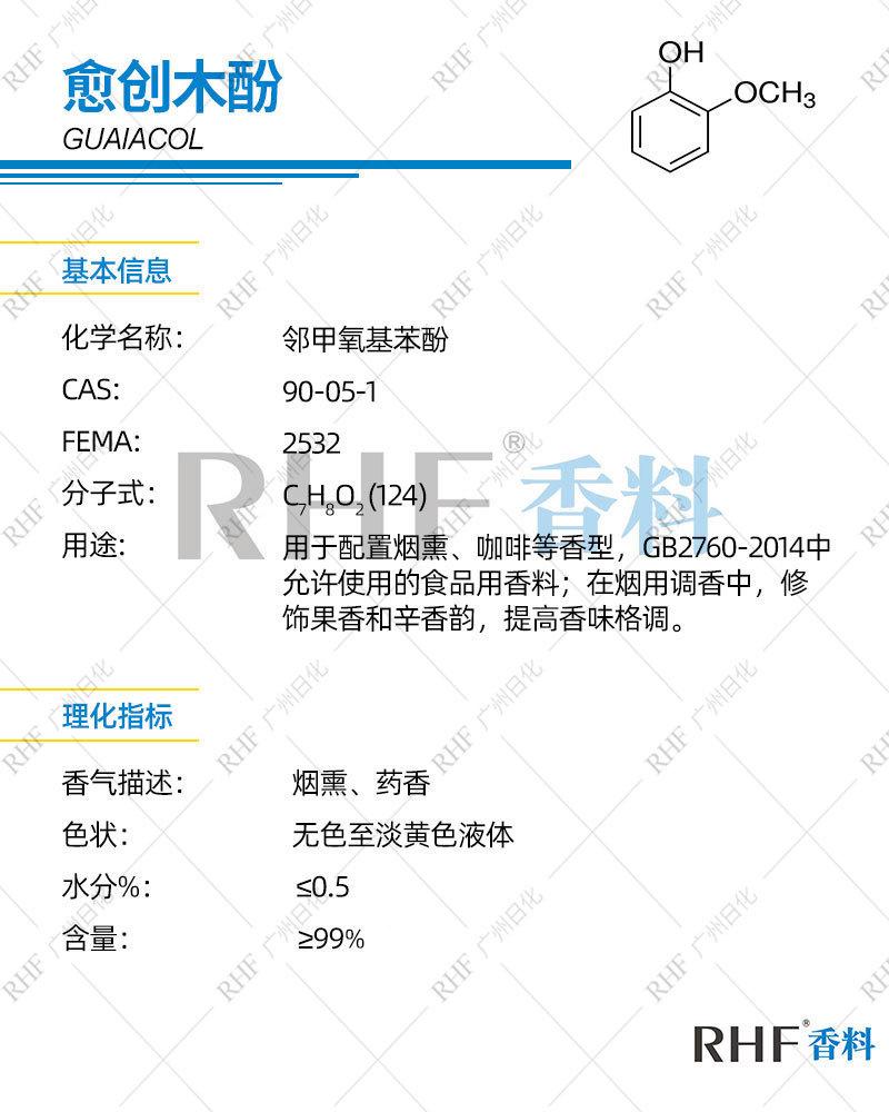 1. Guaiacol é um aromatizante alimentar permitido para uso sob o padrão alimentar nacional GB2760-2014.