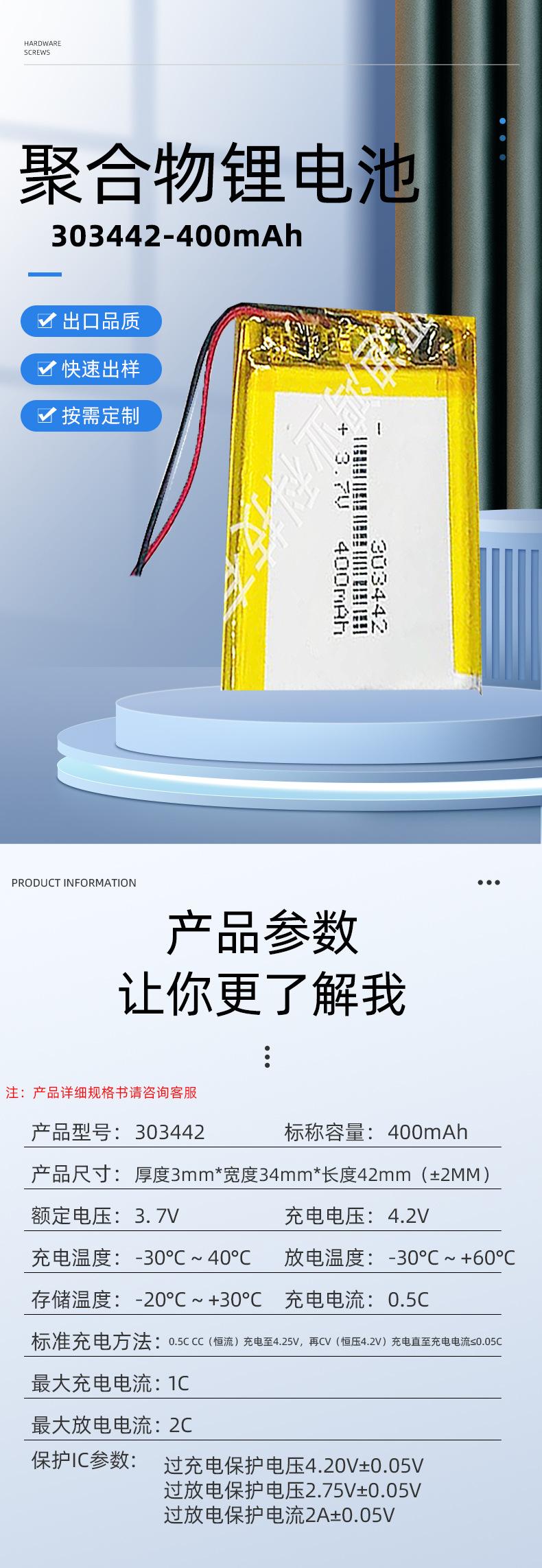 Compre Fornecimento Pronto Bateria de Polímero de Lítio 3.7V 303442 400mAh Bateria para Produto Digital LED no atacado no Joom.pro