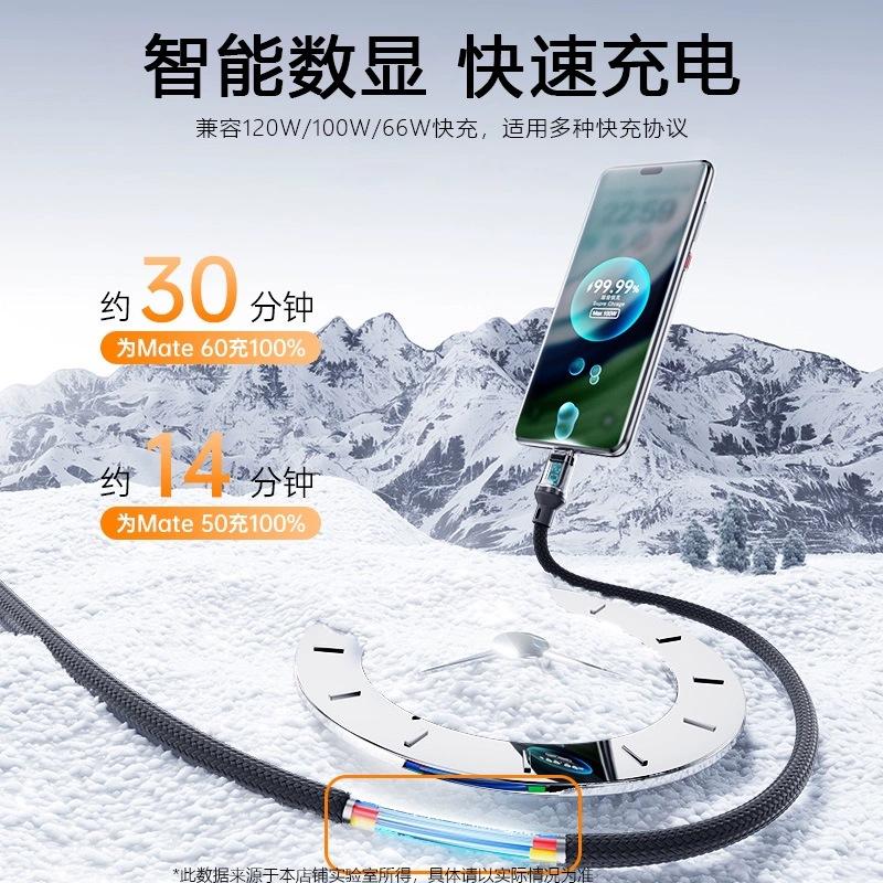 Novo Cabo de Dados com Display Digital Inteligente Tipo C Cabo de Carregamento 120W Adequado para Celular Huawei Honor Cabo de Carregamento Rápido Atacado