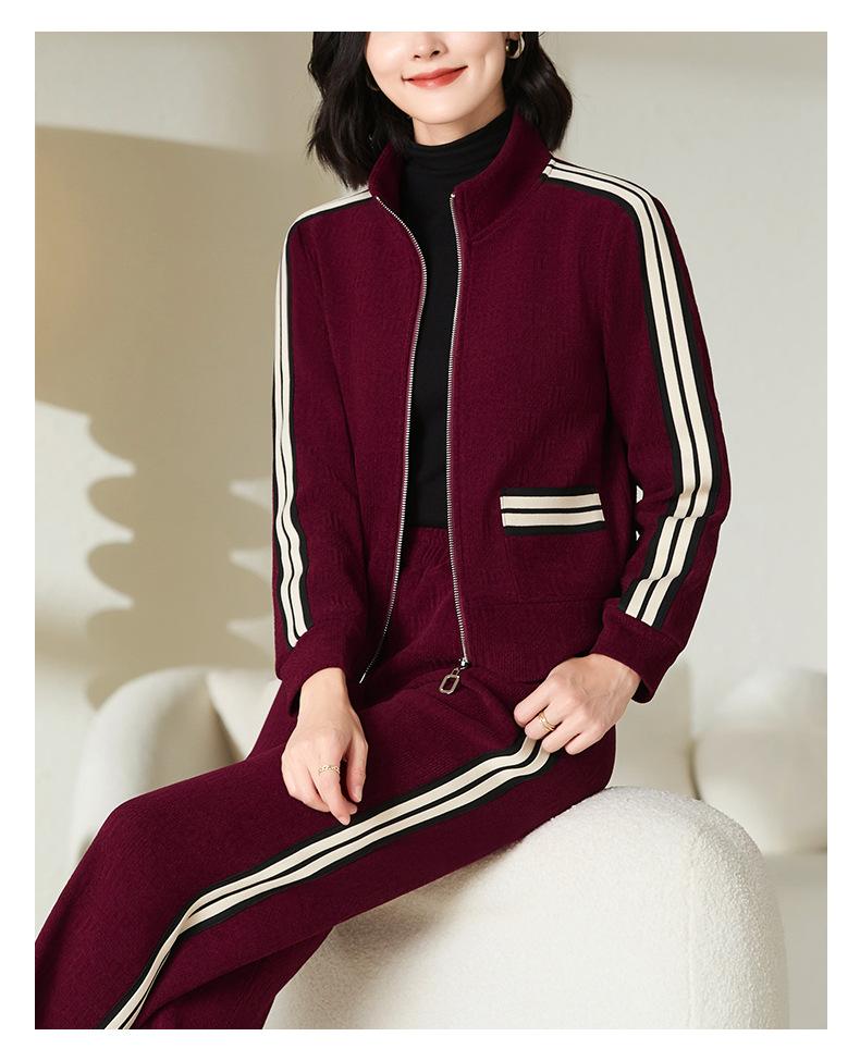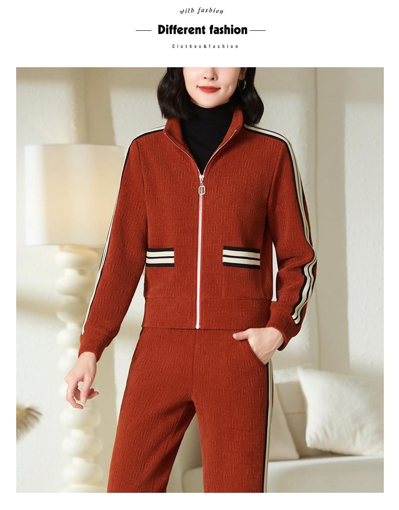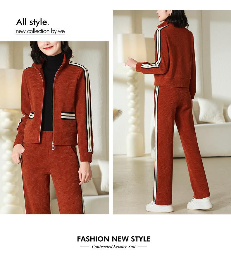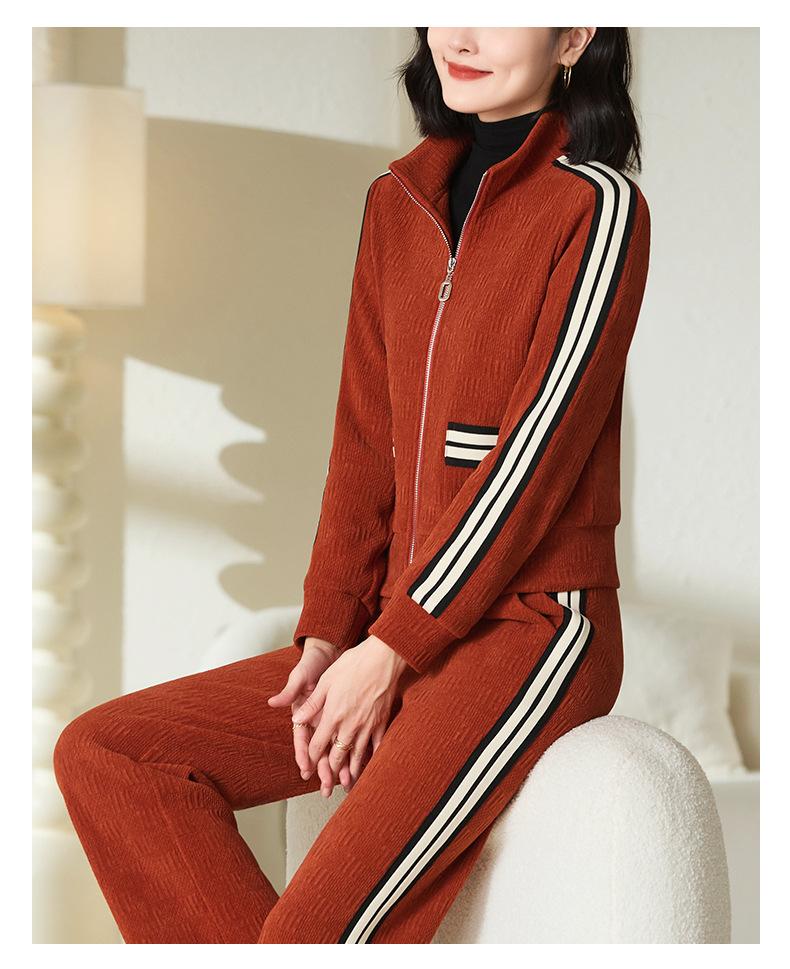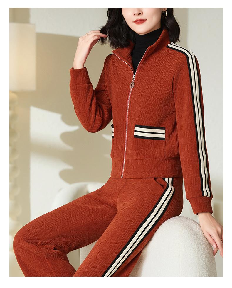 Conjunto de roupa esportiva feminina 2023 novo outono e inverno forrado com lã engrossado quente moderno suéter de gola alta conjunto de duas peças