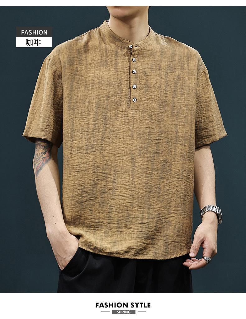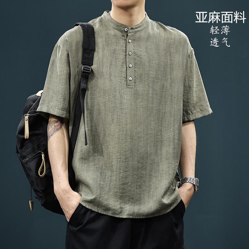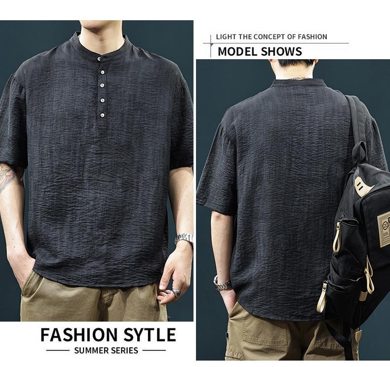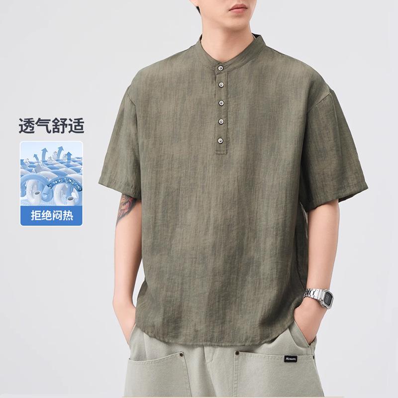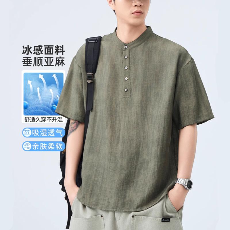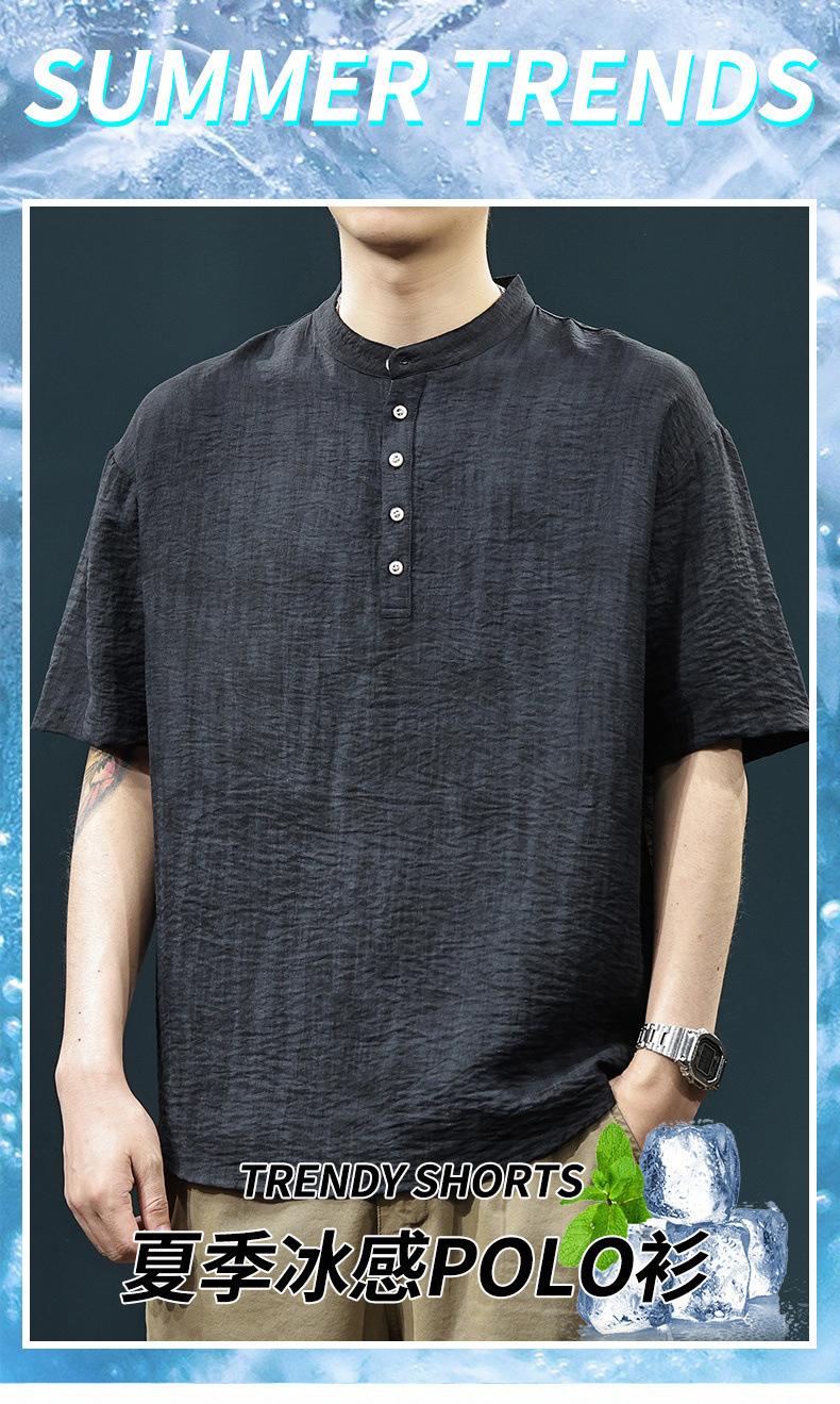 Compre Camisa Polo de Linho de Qualidade com Gola Alta Masculina Verão Tendência Marca Masculina Casual Manga Curta Camiseta Solta Jaqueta Masculina Top no atacado no Joom.pro