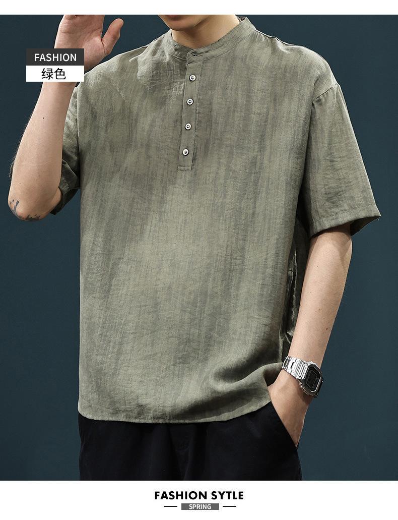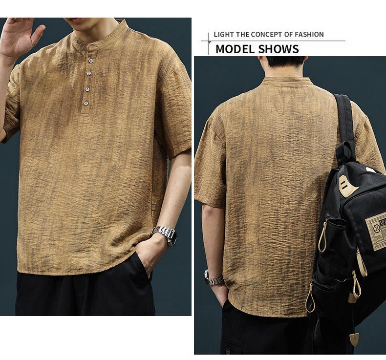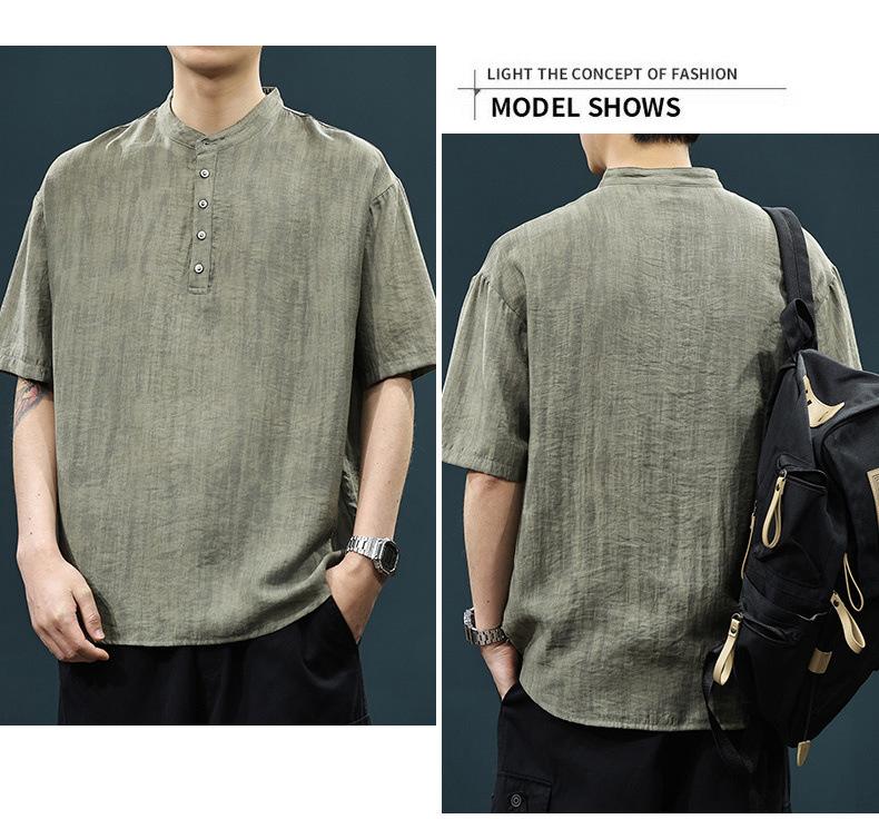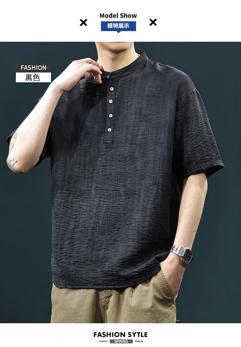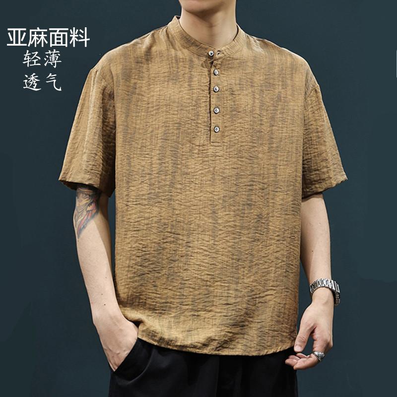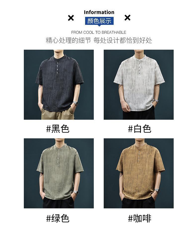 Compre Camisa Polo de Linho de Qualidade com Gola Alta Masculina Verão Tendência Marca Masculina Casual Manga Curta Camiseta Solta Jaqueta Masculina Top no atacado no Joom.pro