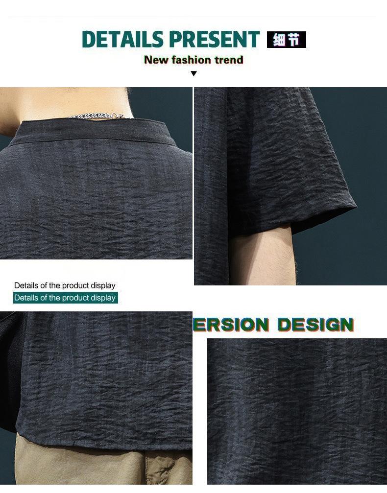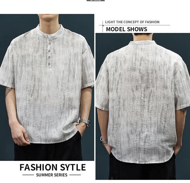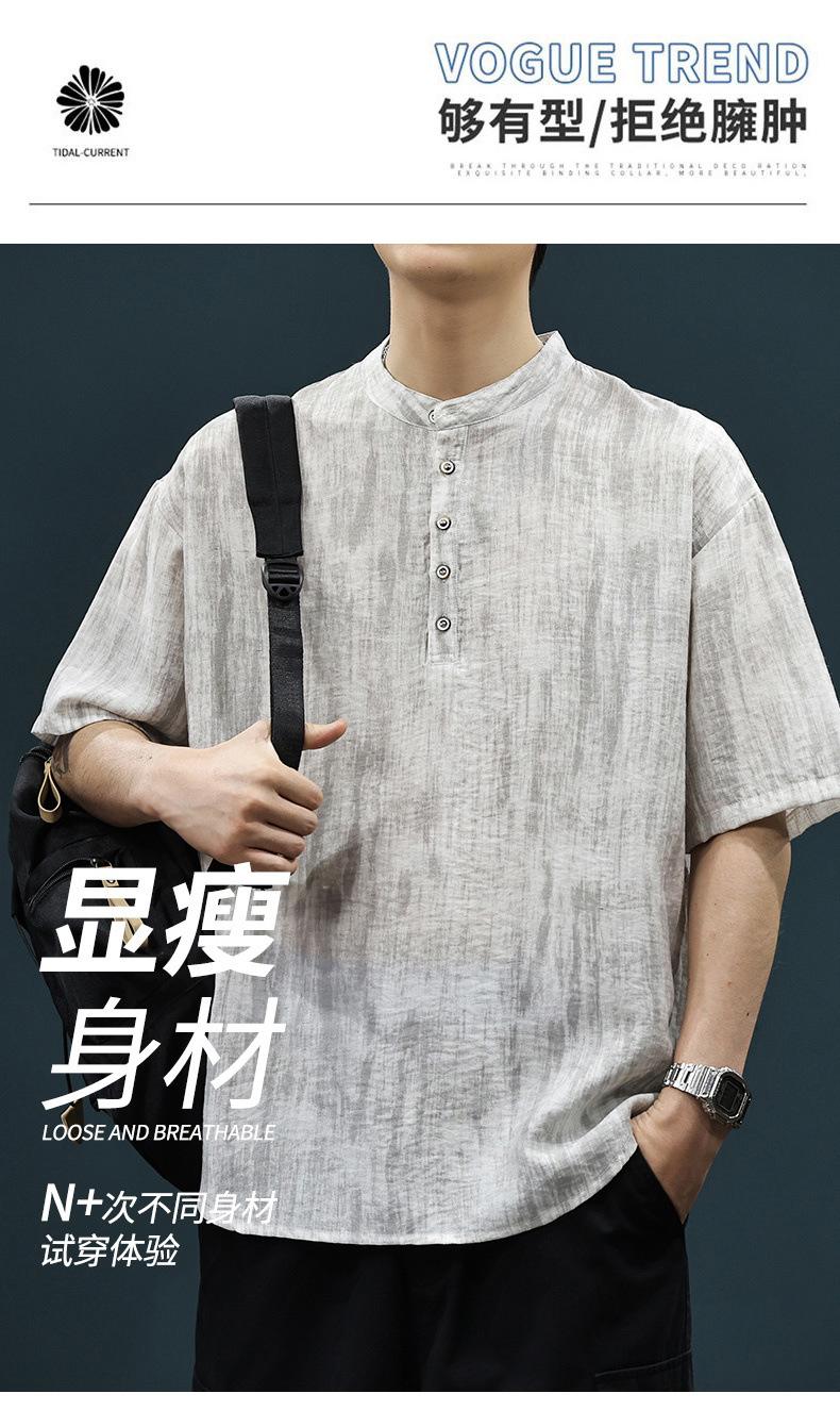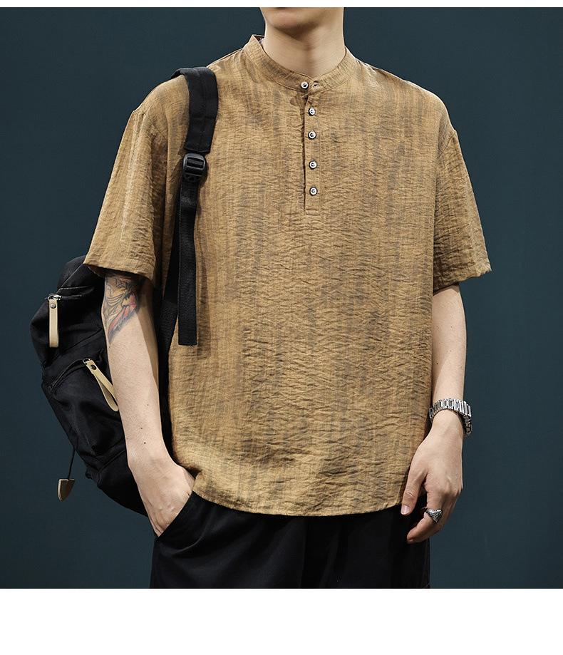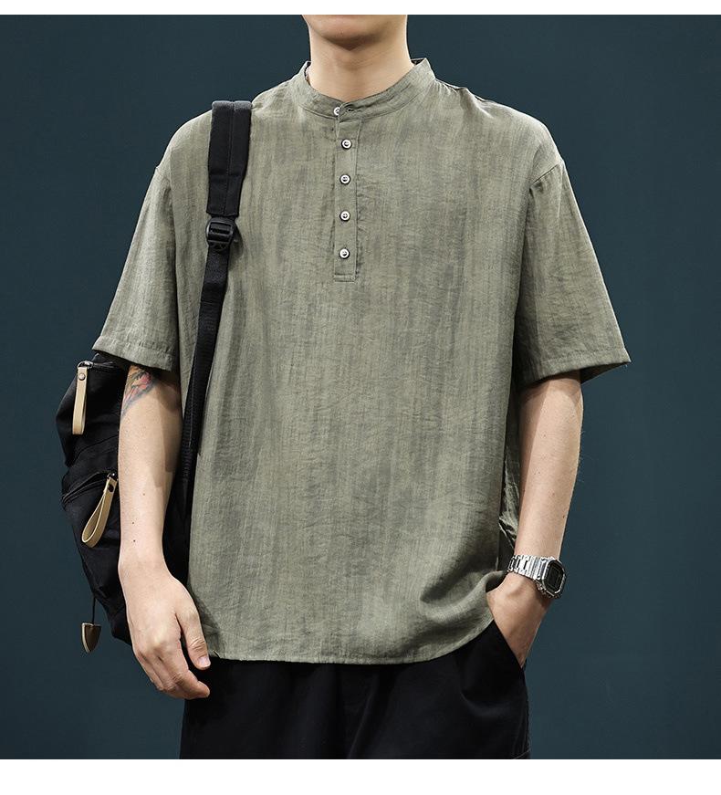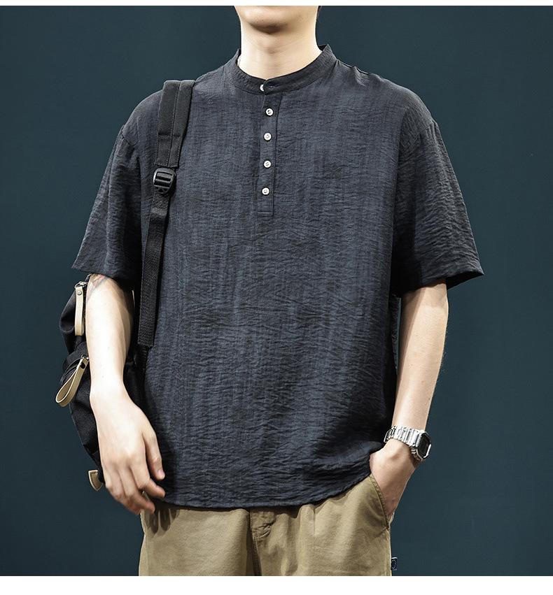 Compre Camisa Polo de Linho de Qualidade com Gola Alta Masculina Verão Tendência Marca Masculina Casual Manga Curta Camiseta Solta Jaqueta Masculina Top no atacado no Joom.pro