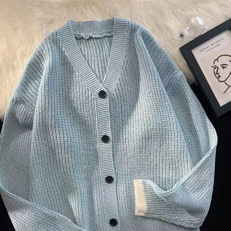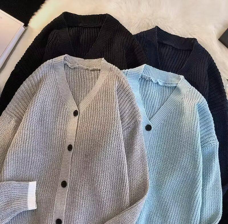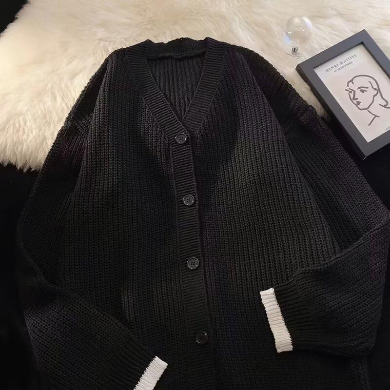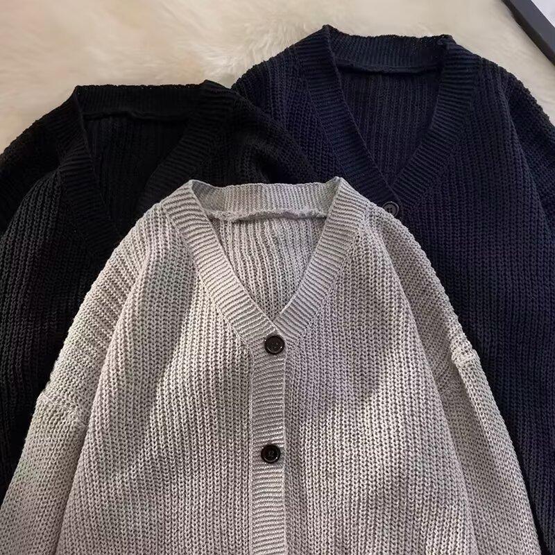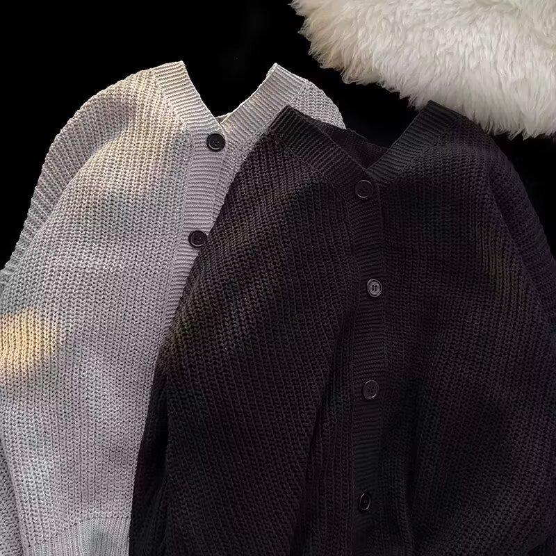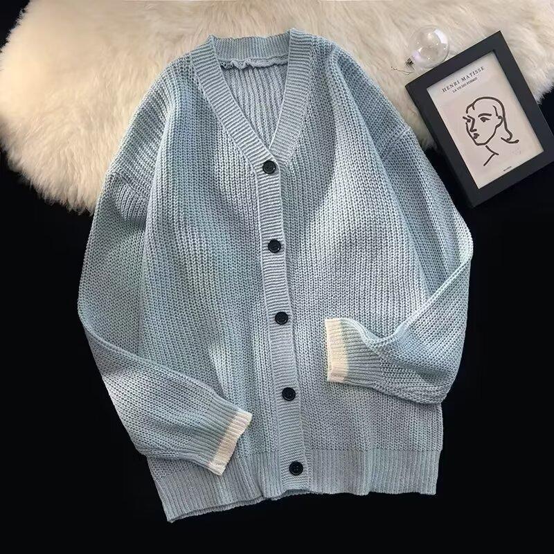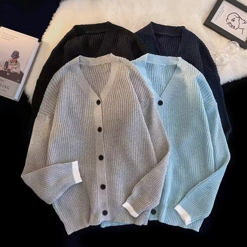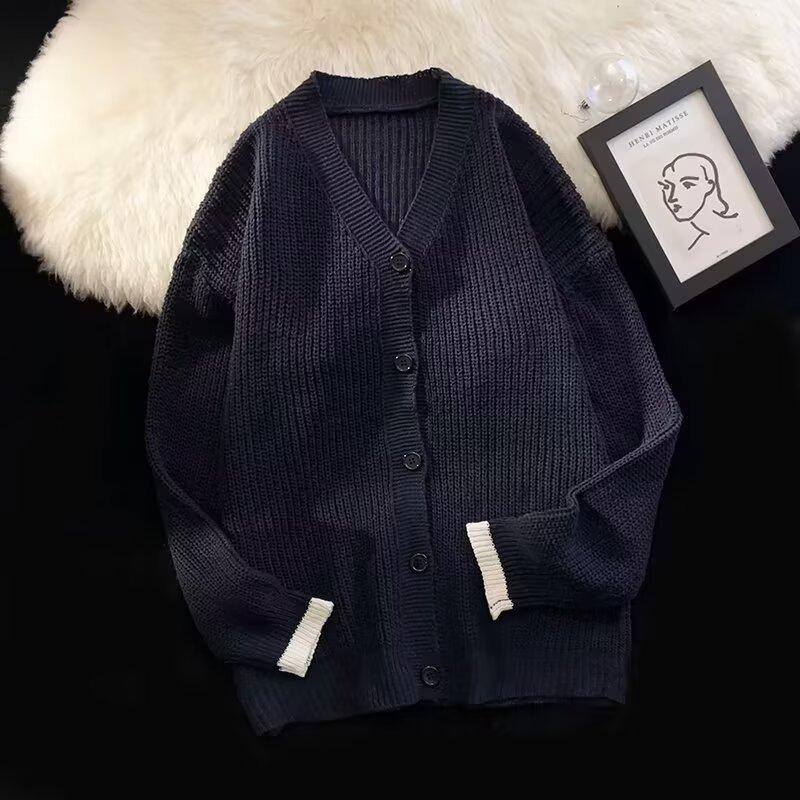 Outono e Inverno 2025 Novo Suéter Cardigan Americano Retrô Casual Estilo Preguiçoso Suéter Decote V Jaqueta Cor Sólida Masculina Tendência