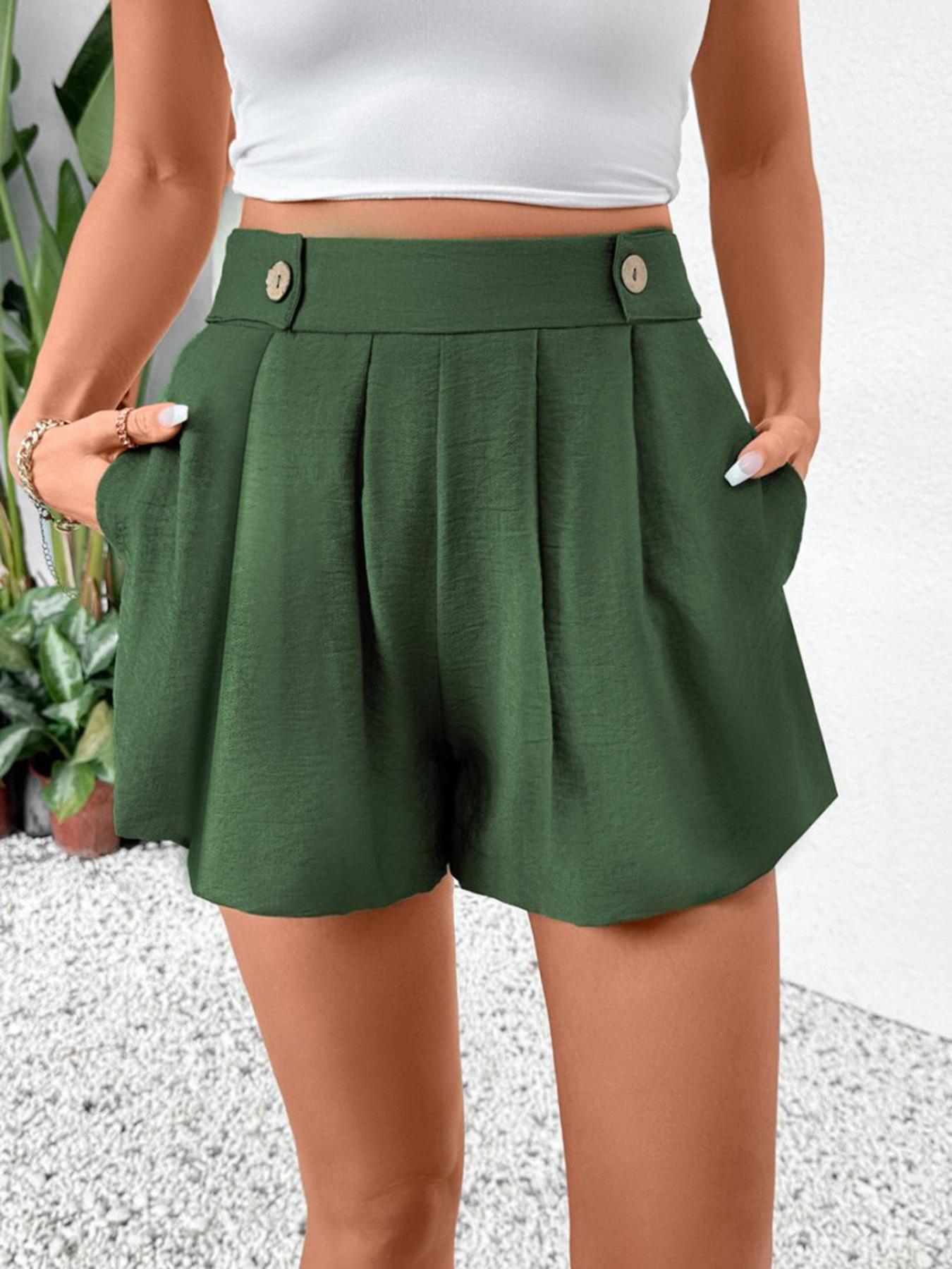 Amazon Cross-border 2025 Shorts Formais Femininos de Cintura Alta Pernas Largas Verão Shorts Casuais com Bolsos Mulheres