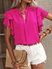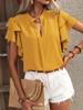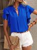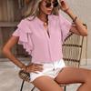 2025 Europa e América Amazon Transfronteiriço Verão Novo Decote em V Casual Manga Camisa de Camada Dupla Cor Sólida Camisa Top