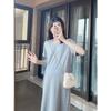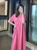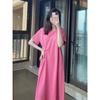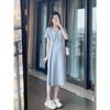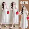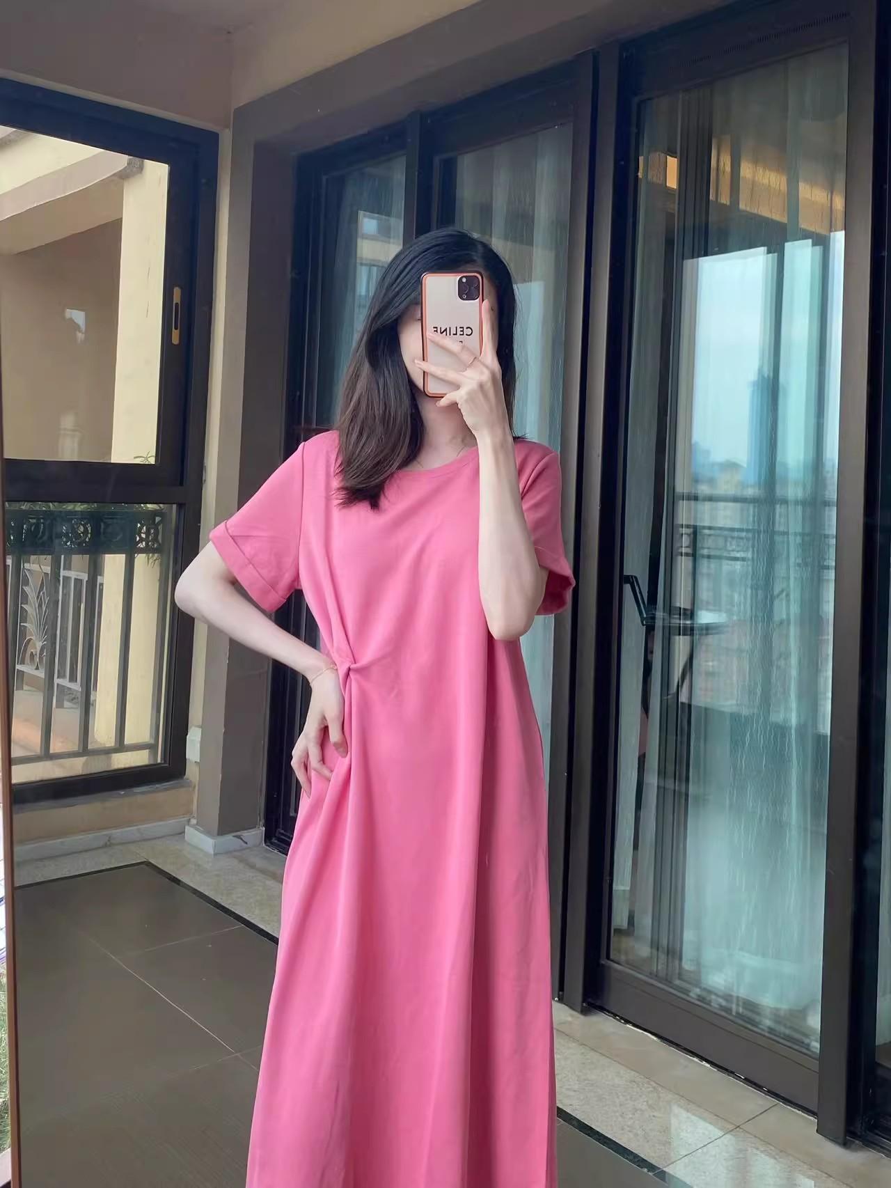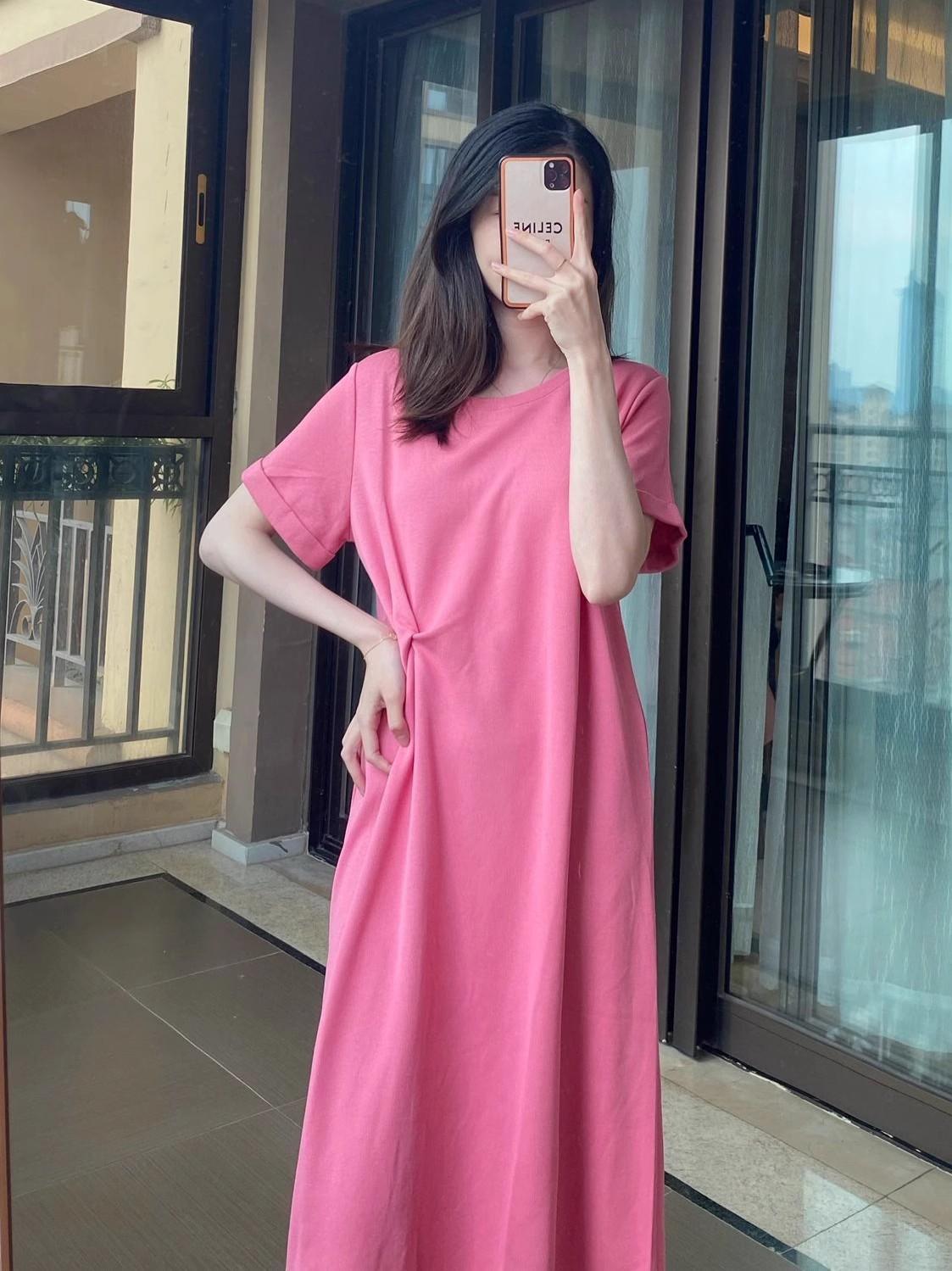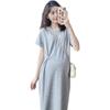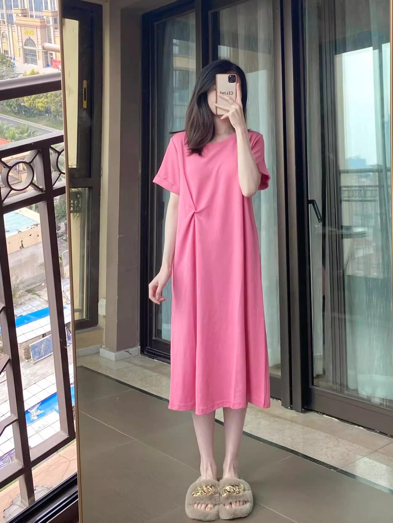 Vestido de Maternidade Verão 2025 Novo Estilo Coreano Casual Emagrecimento Solto Gola Redonda Manga Curta Saia Roupa de Maternidade Vestido de Verão