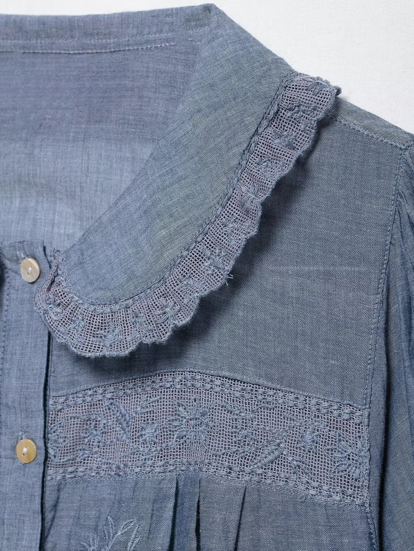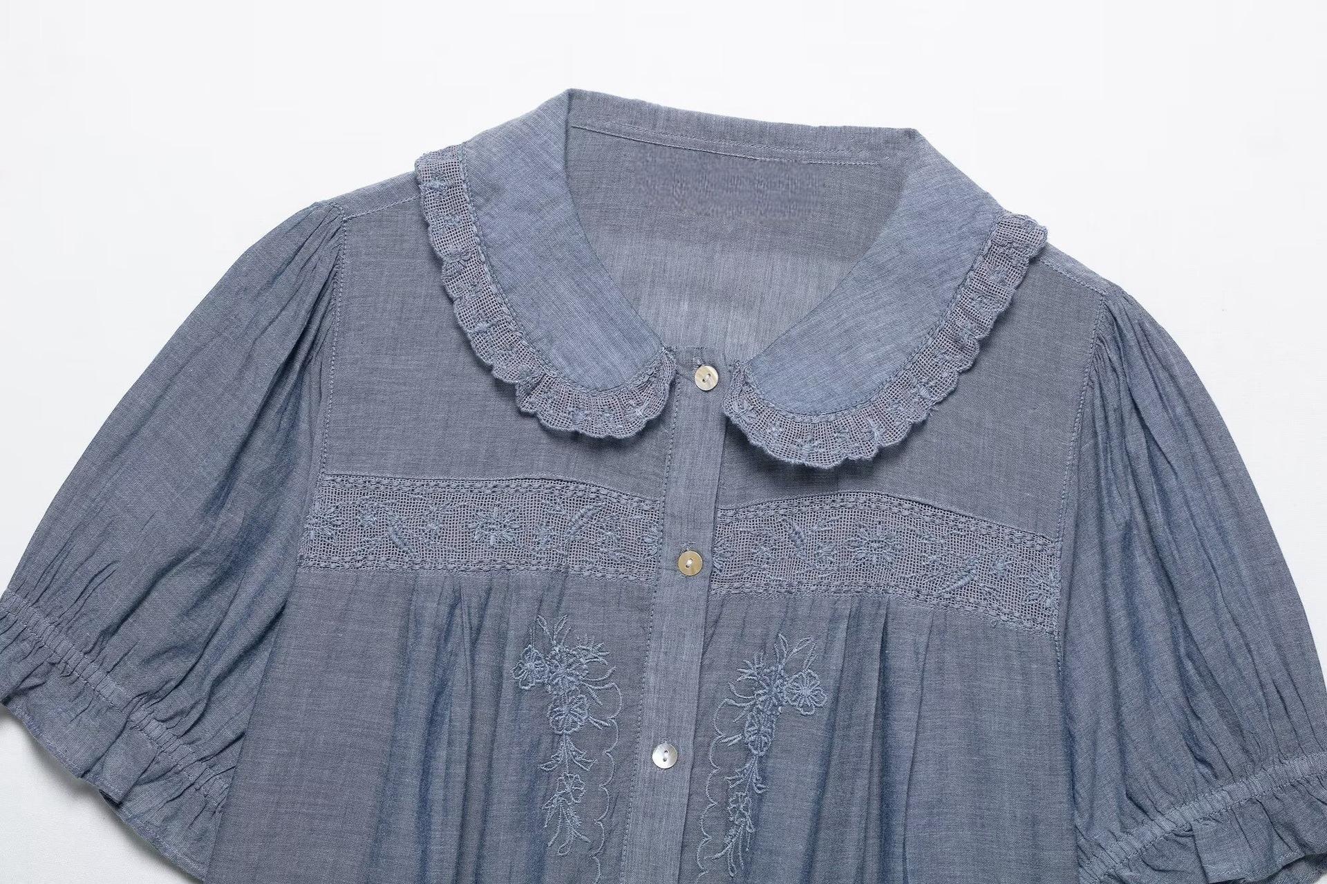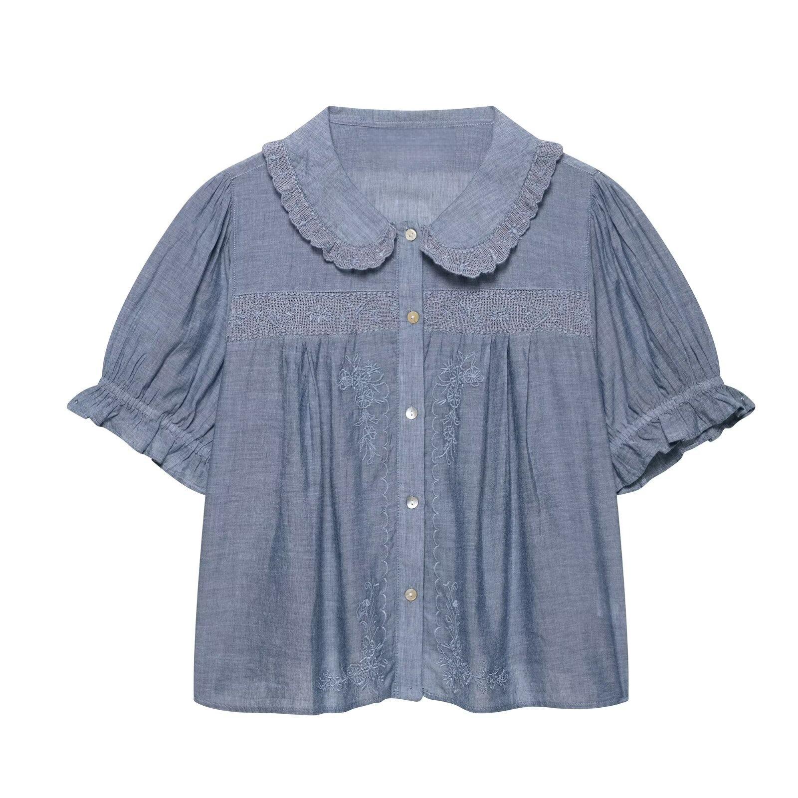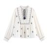 Roupa feminina europeia e americana transfronteiriça 2025 primavera novo senso de design abotoamento simples bordado de flores lapela camisa casual
