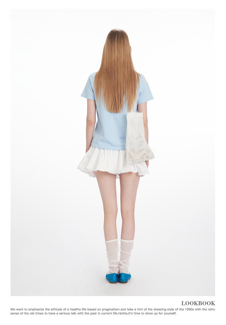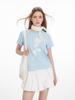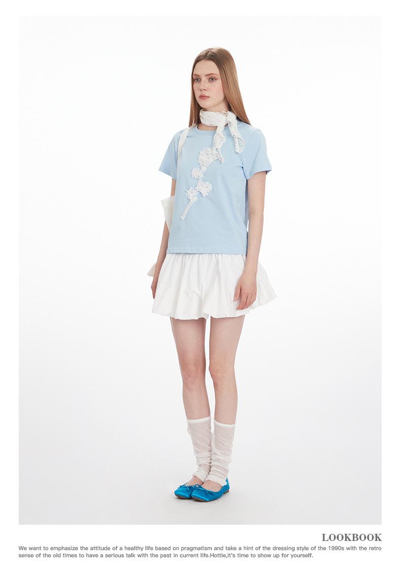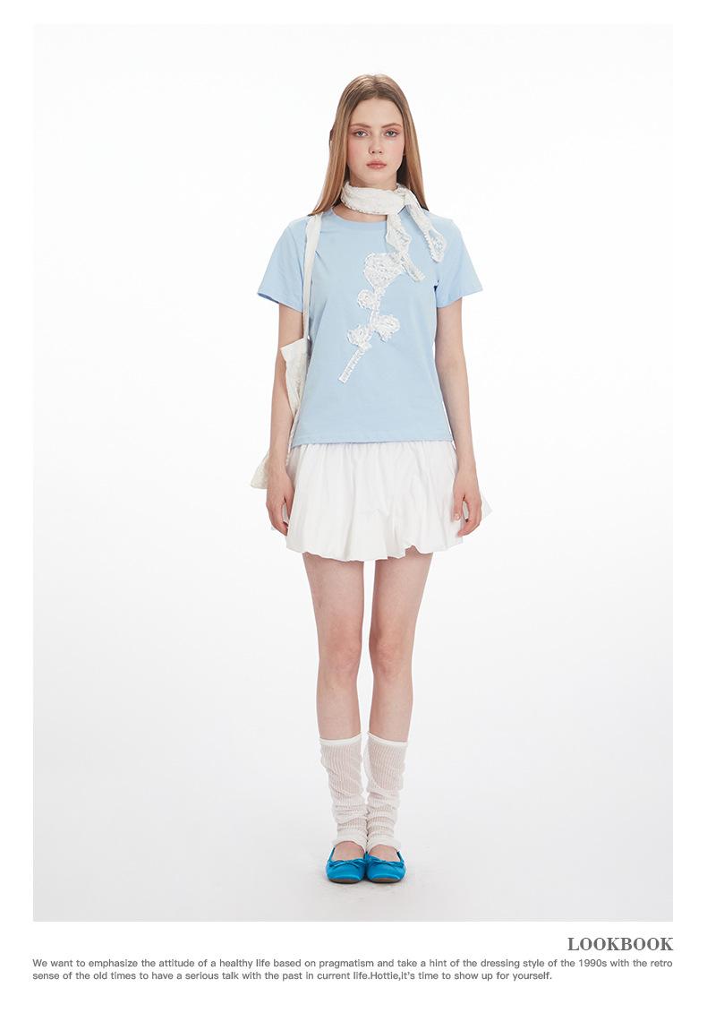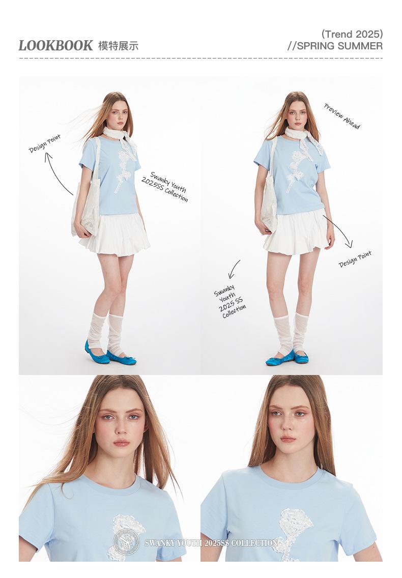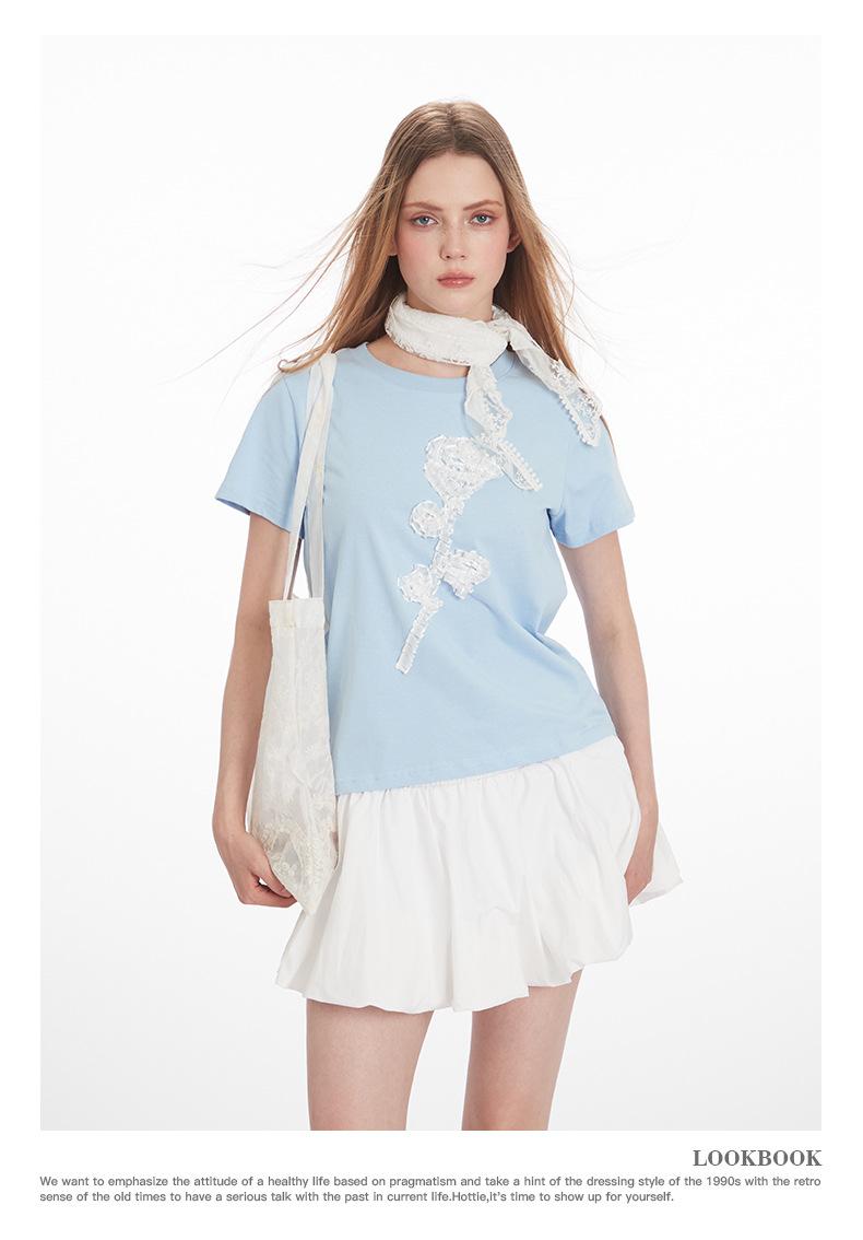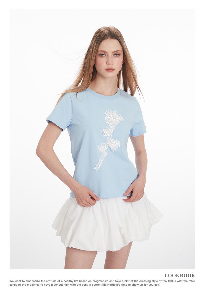 HeyHenry 2025 Camiseta Retrô Estilo Americano de Manga Curta Feminina Algodão Puro Design de Flor na Mão Roupa de Ombro para o Verão