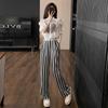Design com senso de moda casual, calças de perna larga, conjunto de gola redonda, manga longa solta, top de estilo doce e descolado, roupa feminina de duas peças
