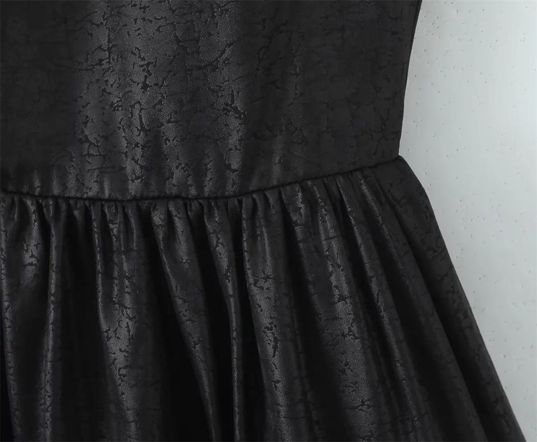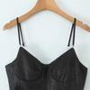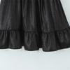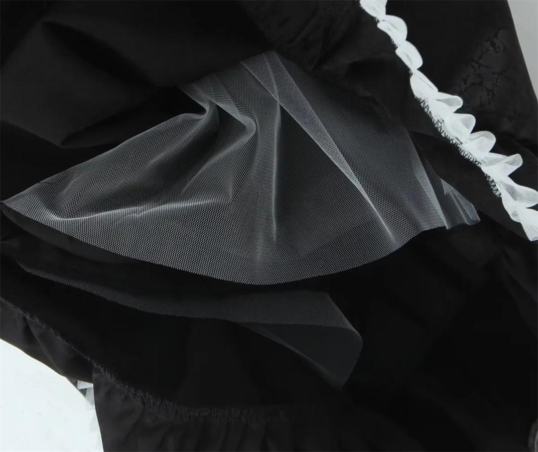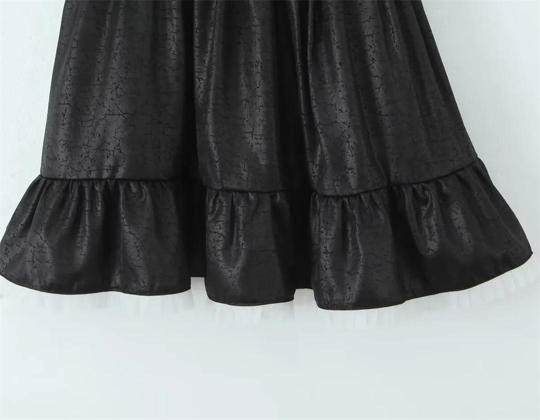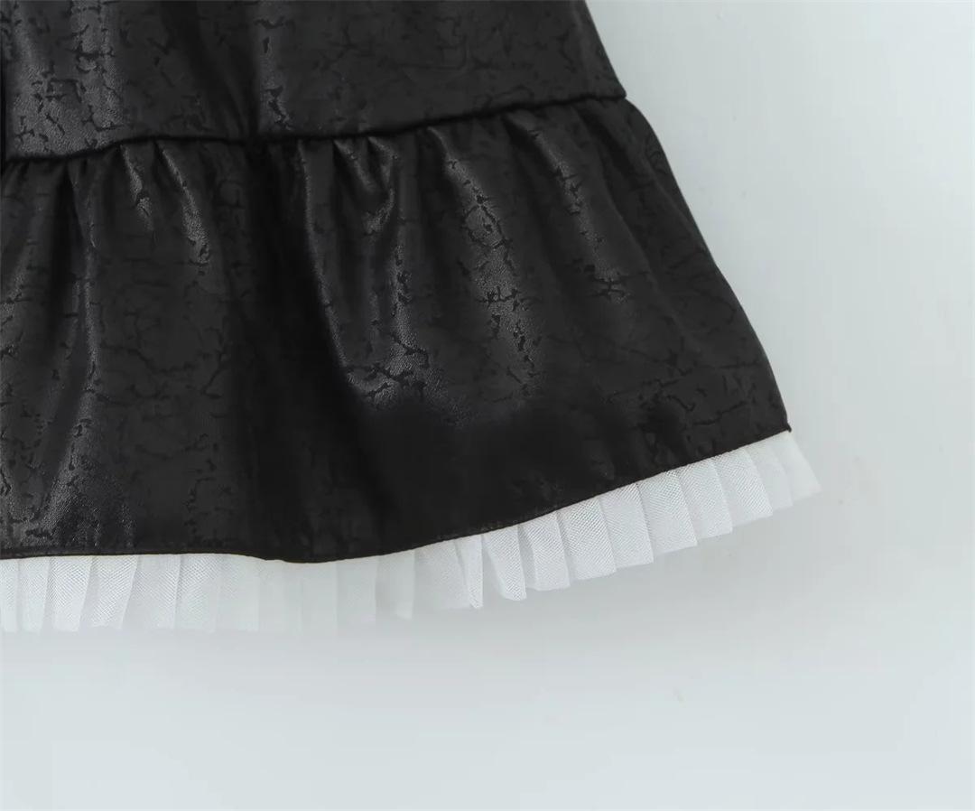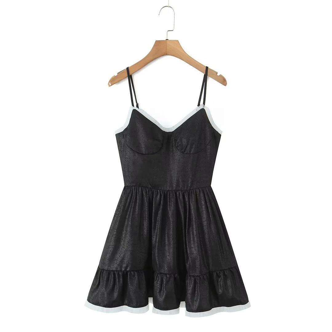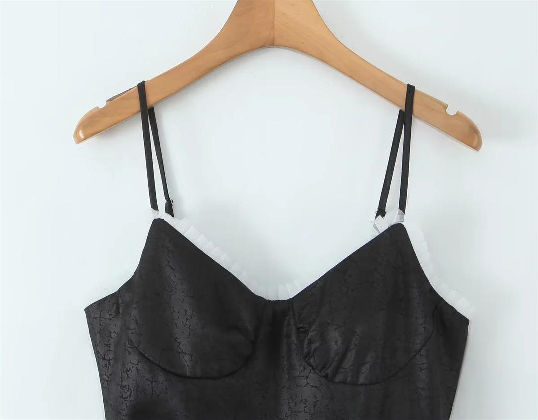 Vestido Francês Decote V Renda Contrastante Alças Finas, Feminino Cintura Justa Babados Saia Tutu Princesa