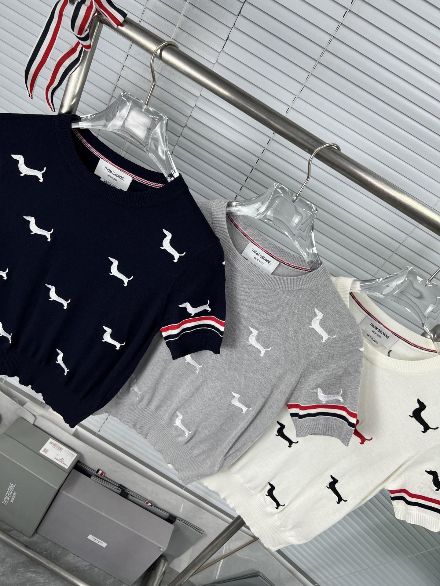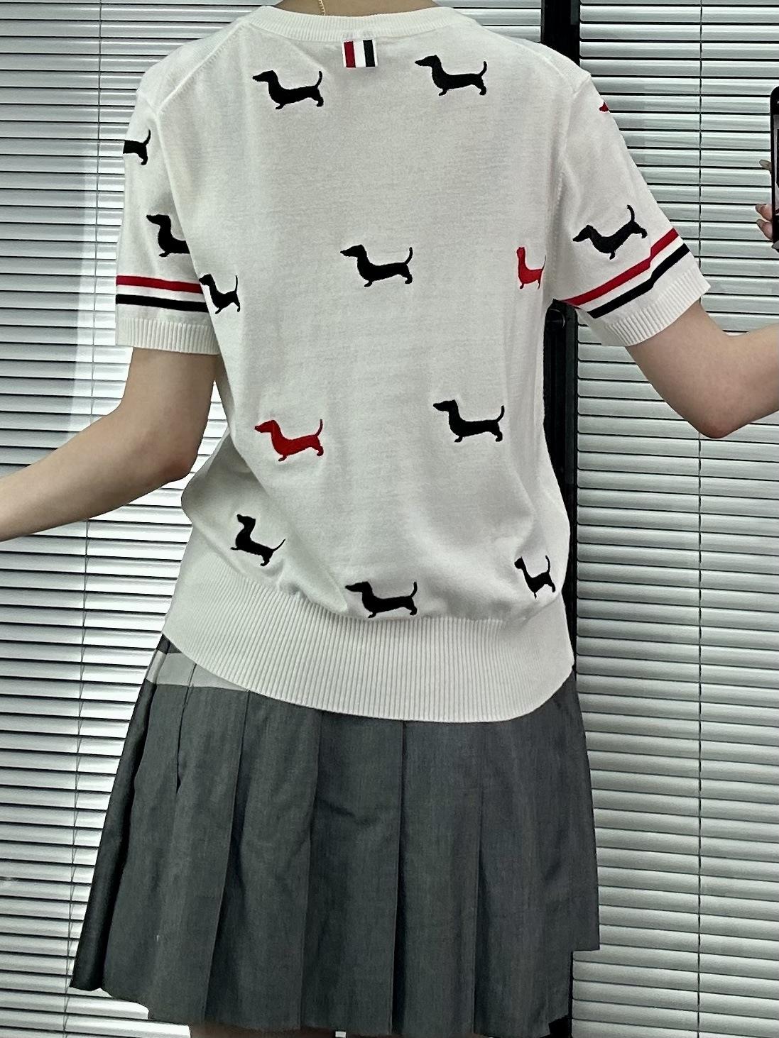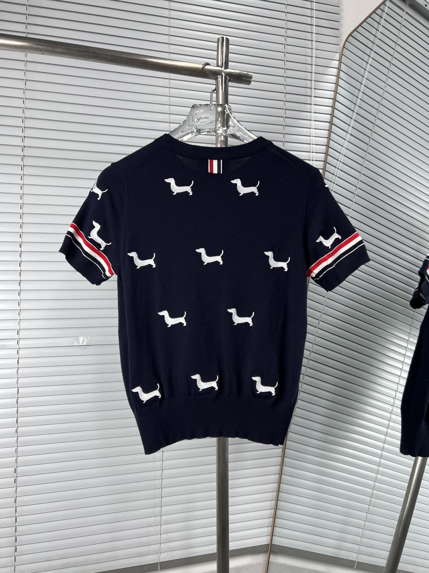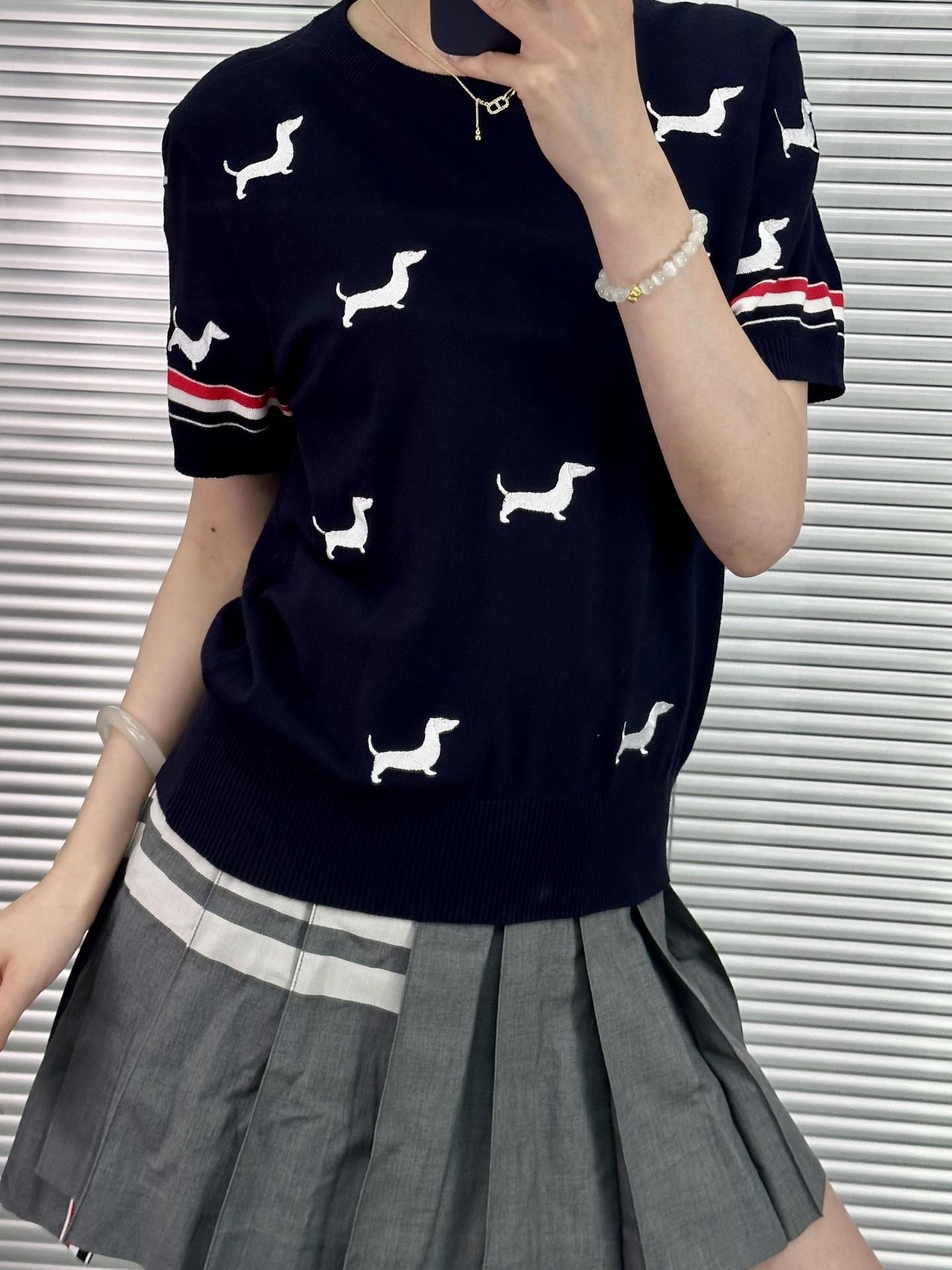 Tb Vendas Diretas de Fábrica Versão Alta Verão Novo Regata Feminina Bordada de Corpo Inteiro com Filhote de Cachorro de Tecido Dupla Face de Manga Curta