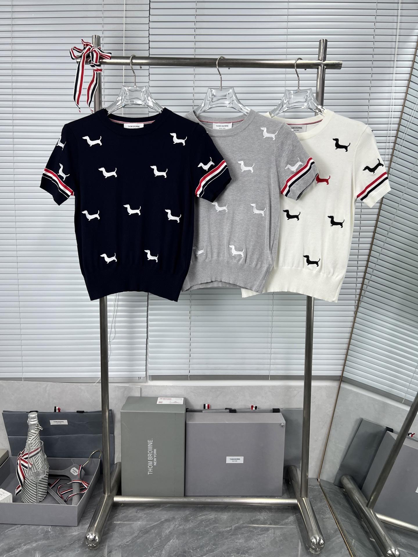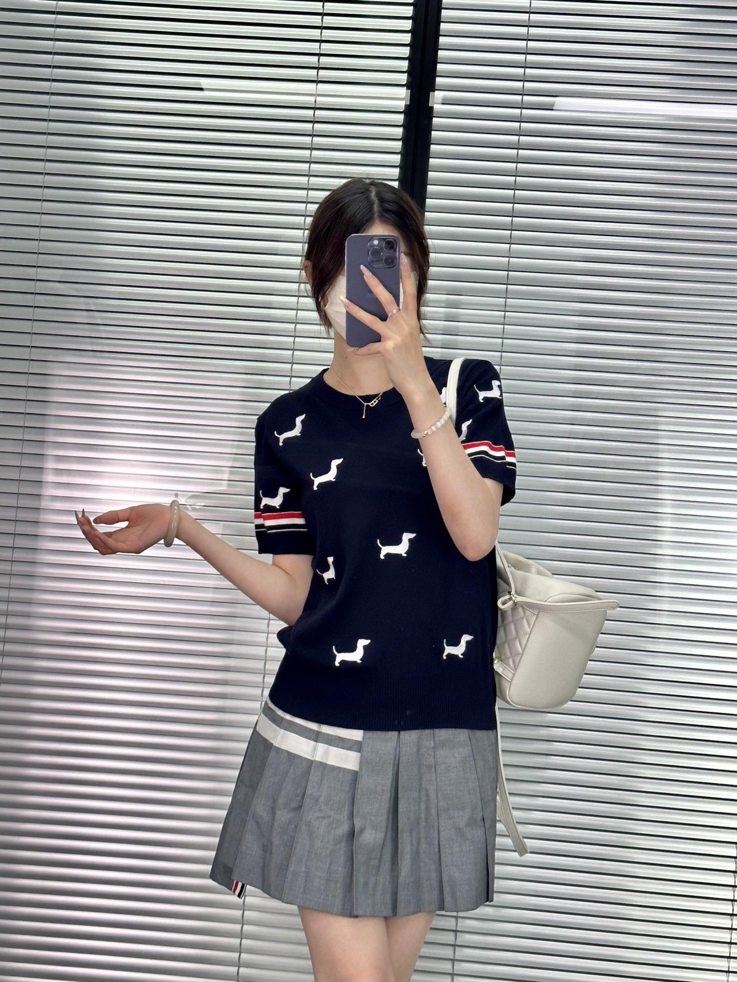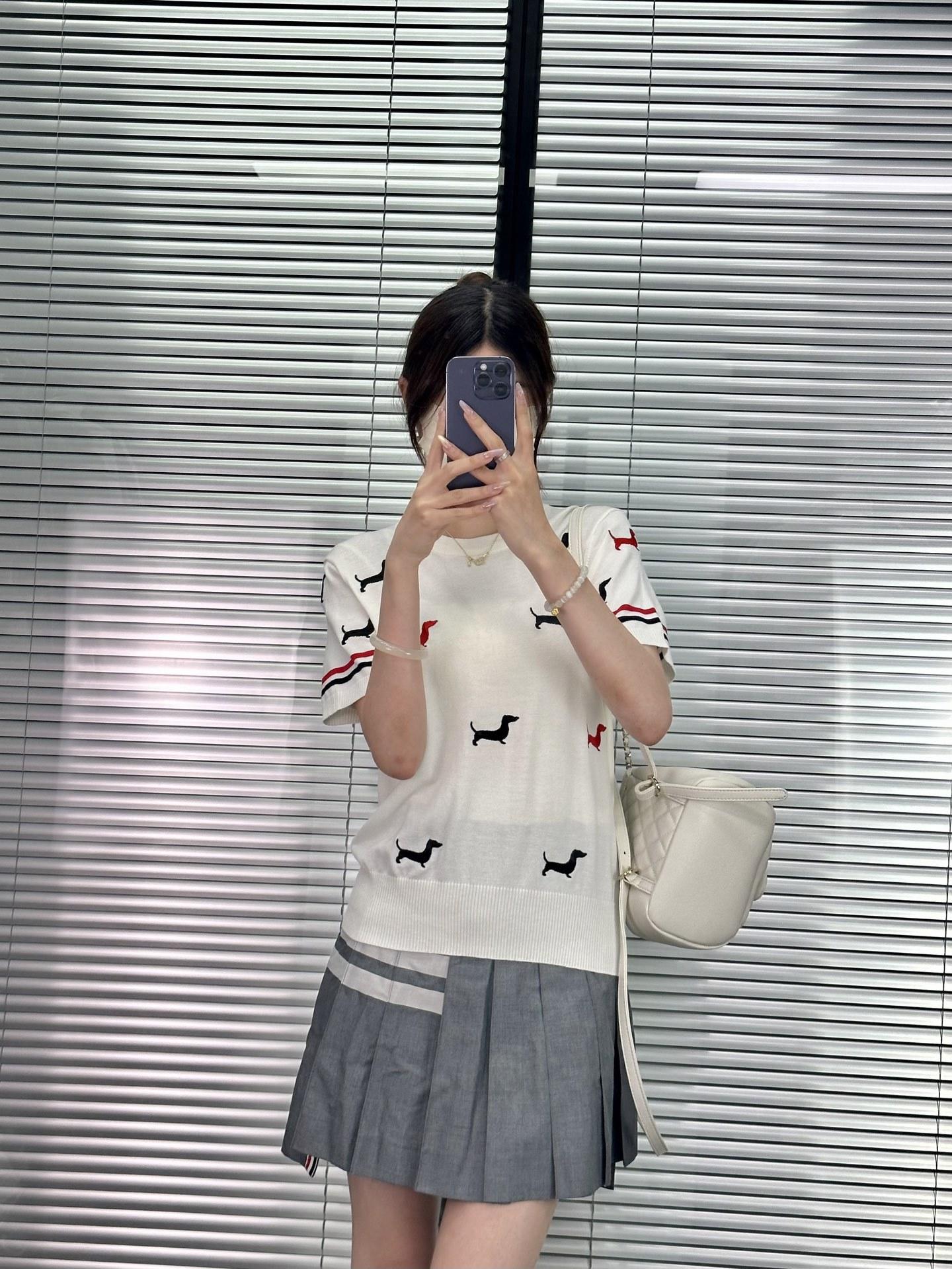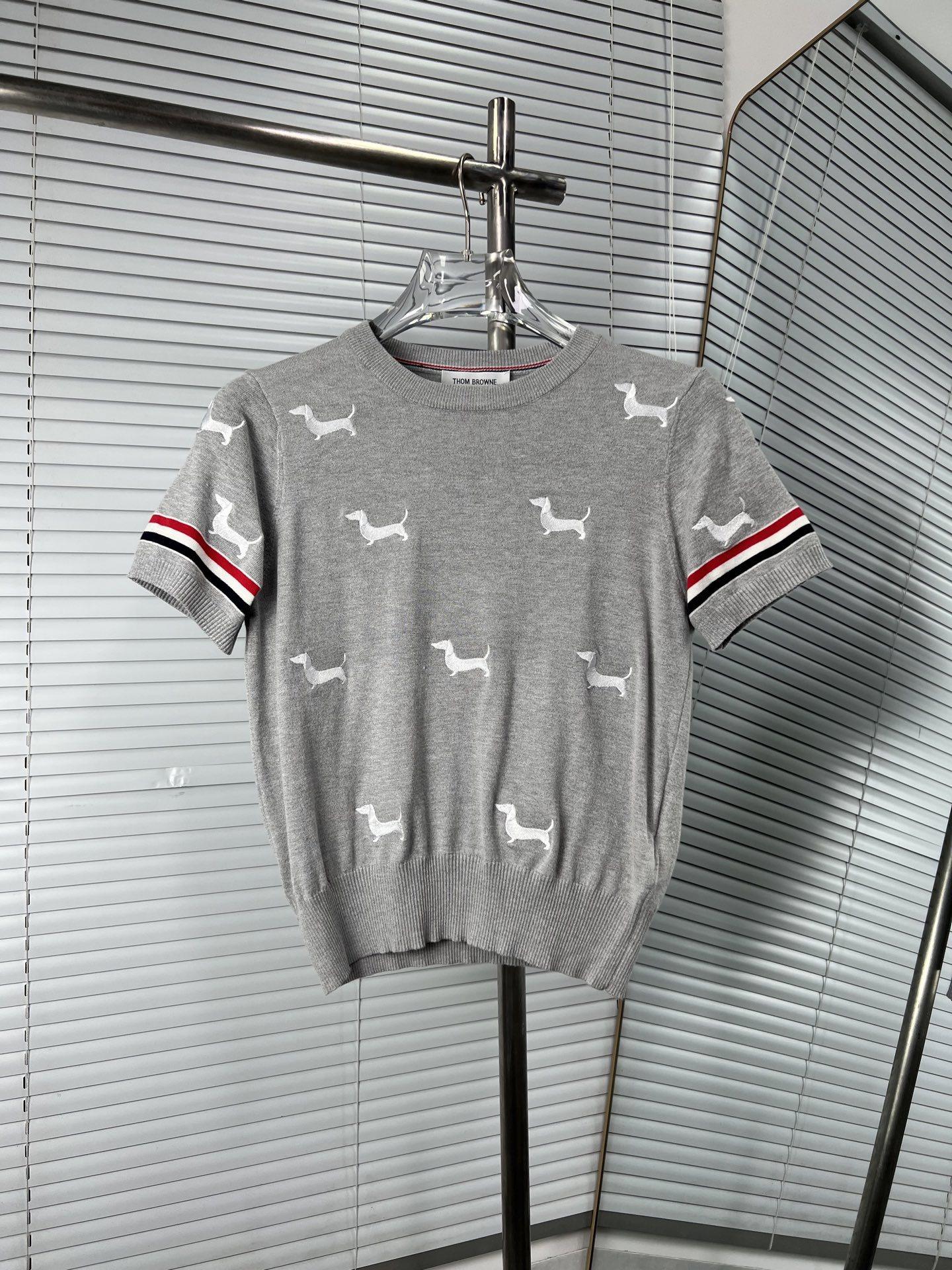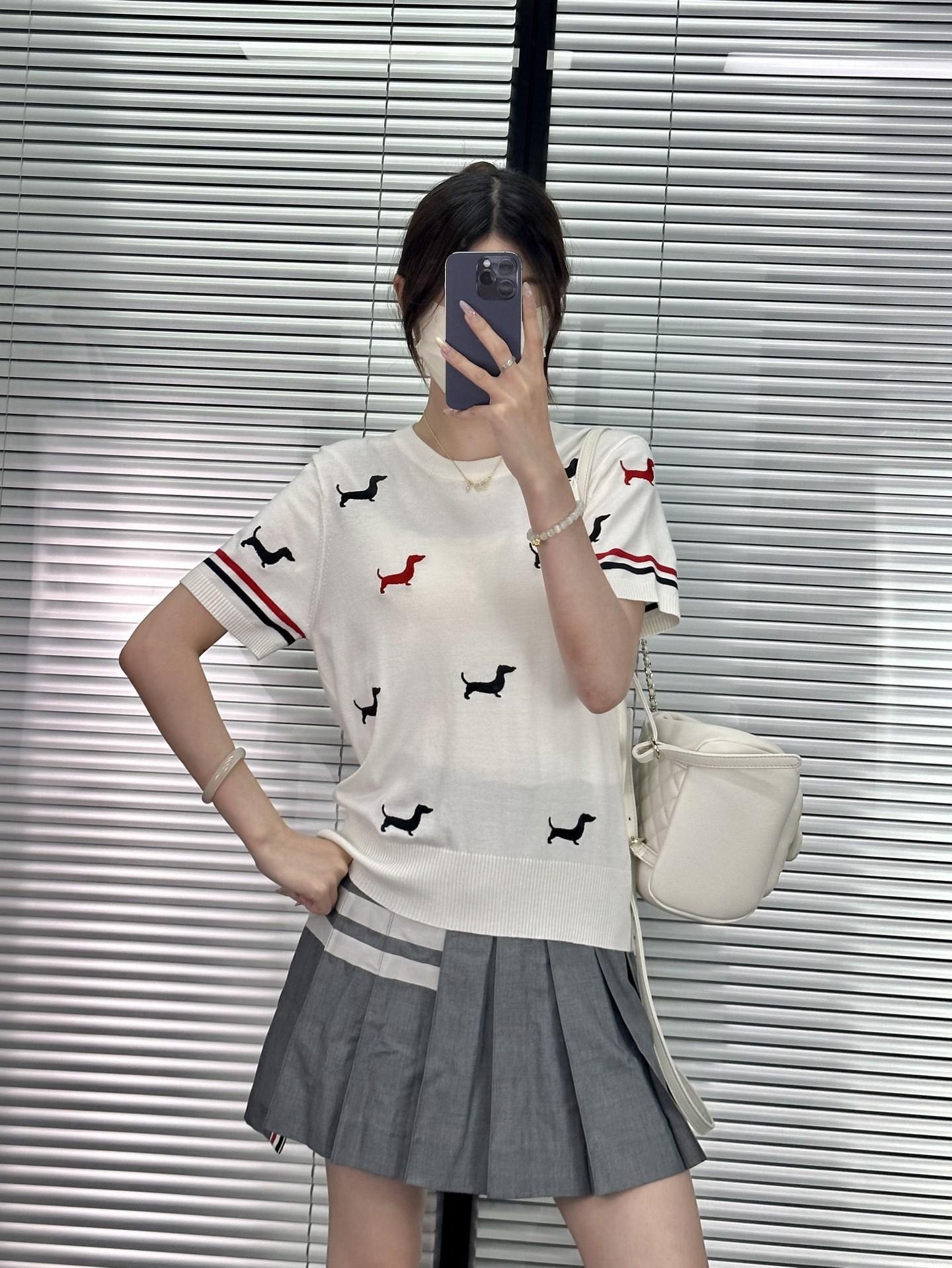Tb Vendas Diretas de Fábrica Versão Alta Verão Novo Regata Feminina Bordada de Corpo Inteiro com Filhote de Cachorro de Tecido Dupla Face de Manga Curta