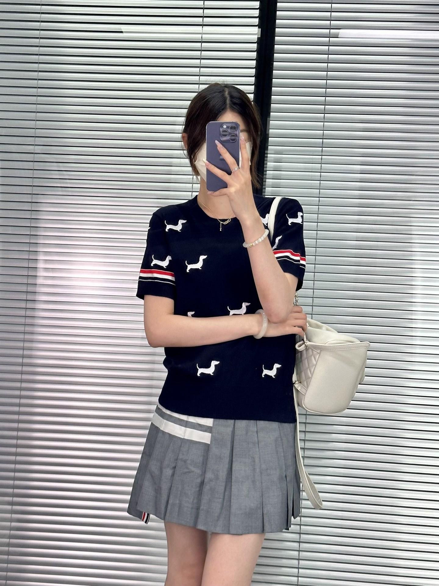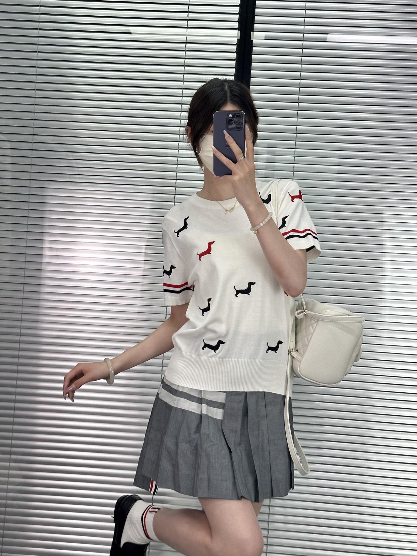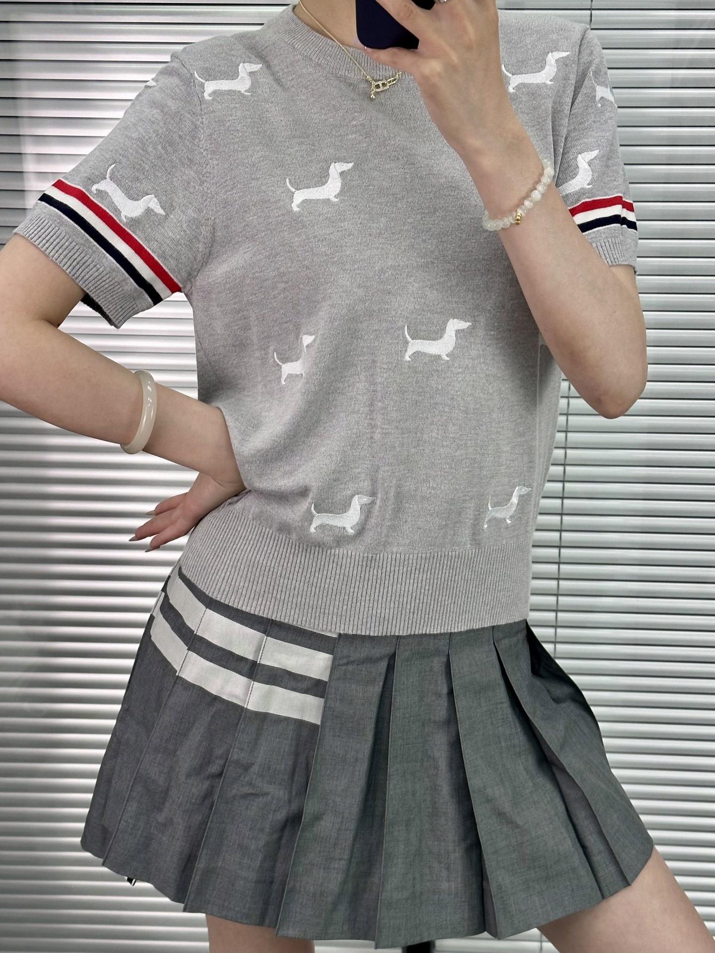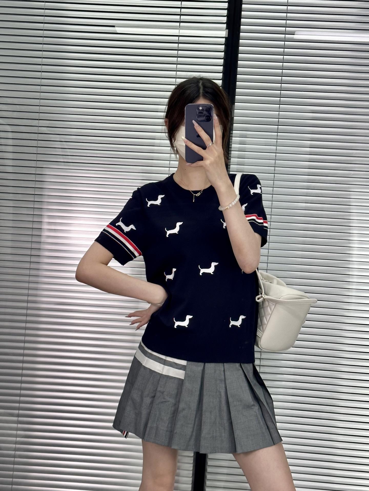Tb Vendas Diretas de Fábrica Versão Alta Verão Novo Regata Feminina Bordada de Corpo Inteiro com Filhote de Cachorro de Tecido Dupla Face de Manga Curta