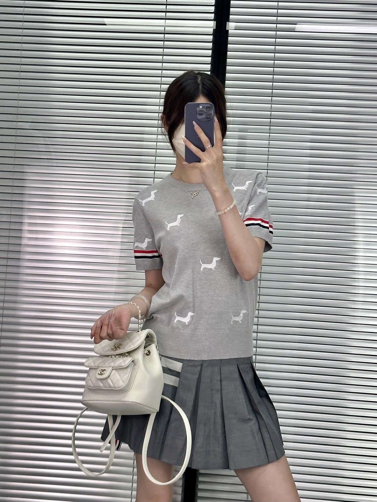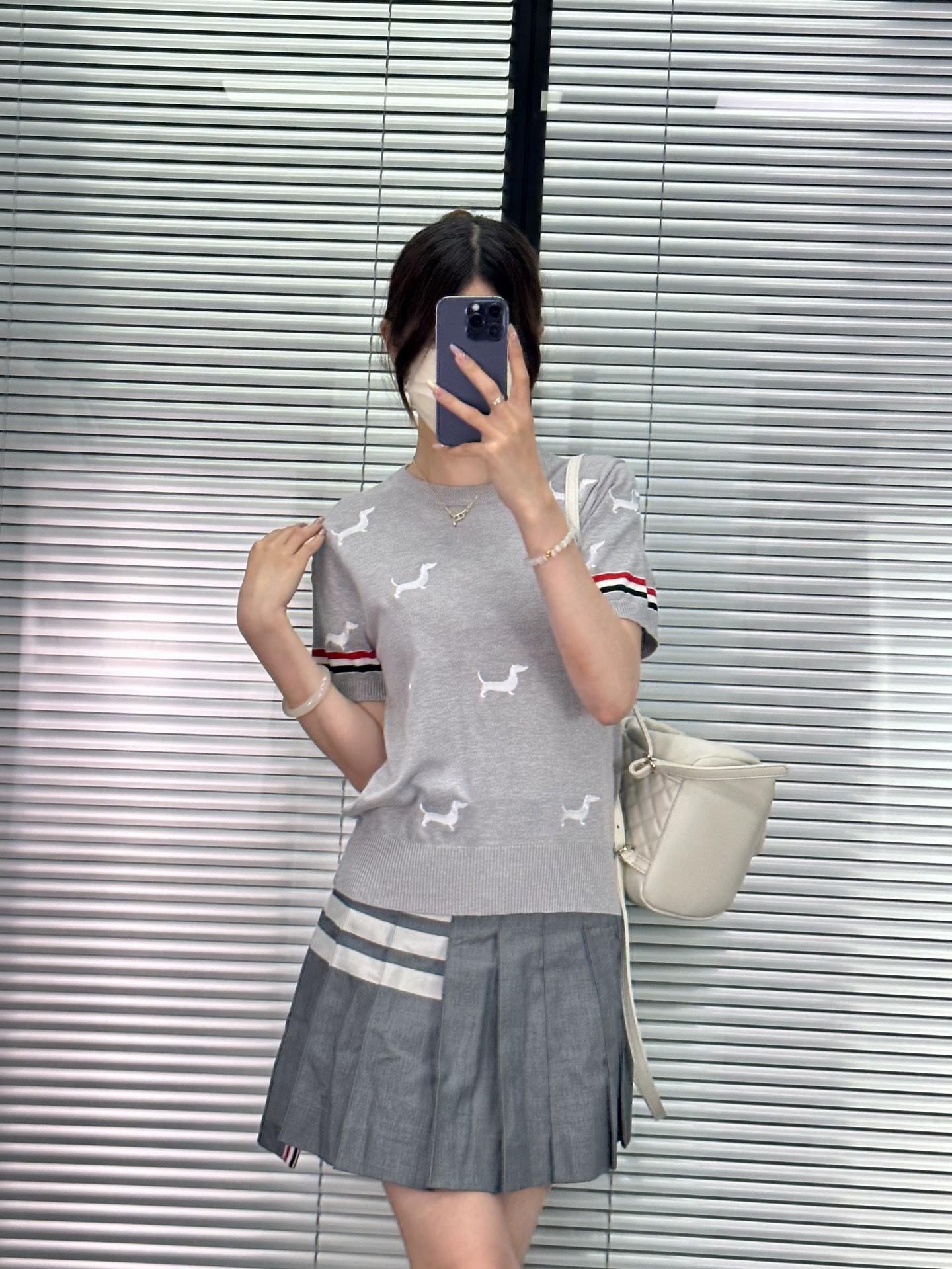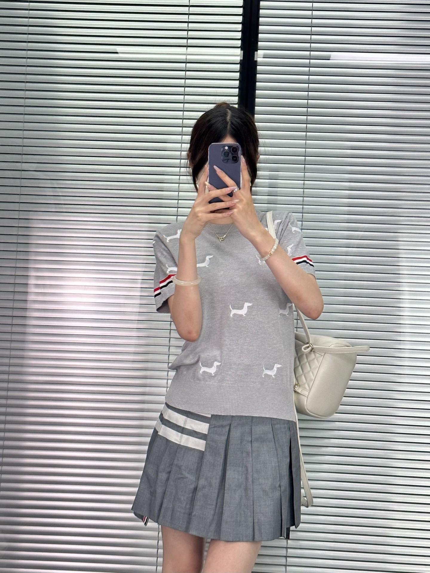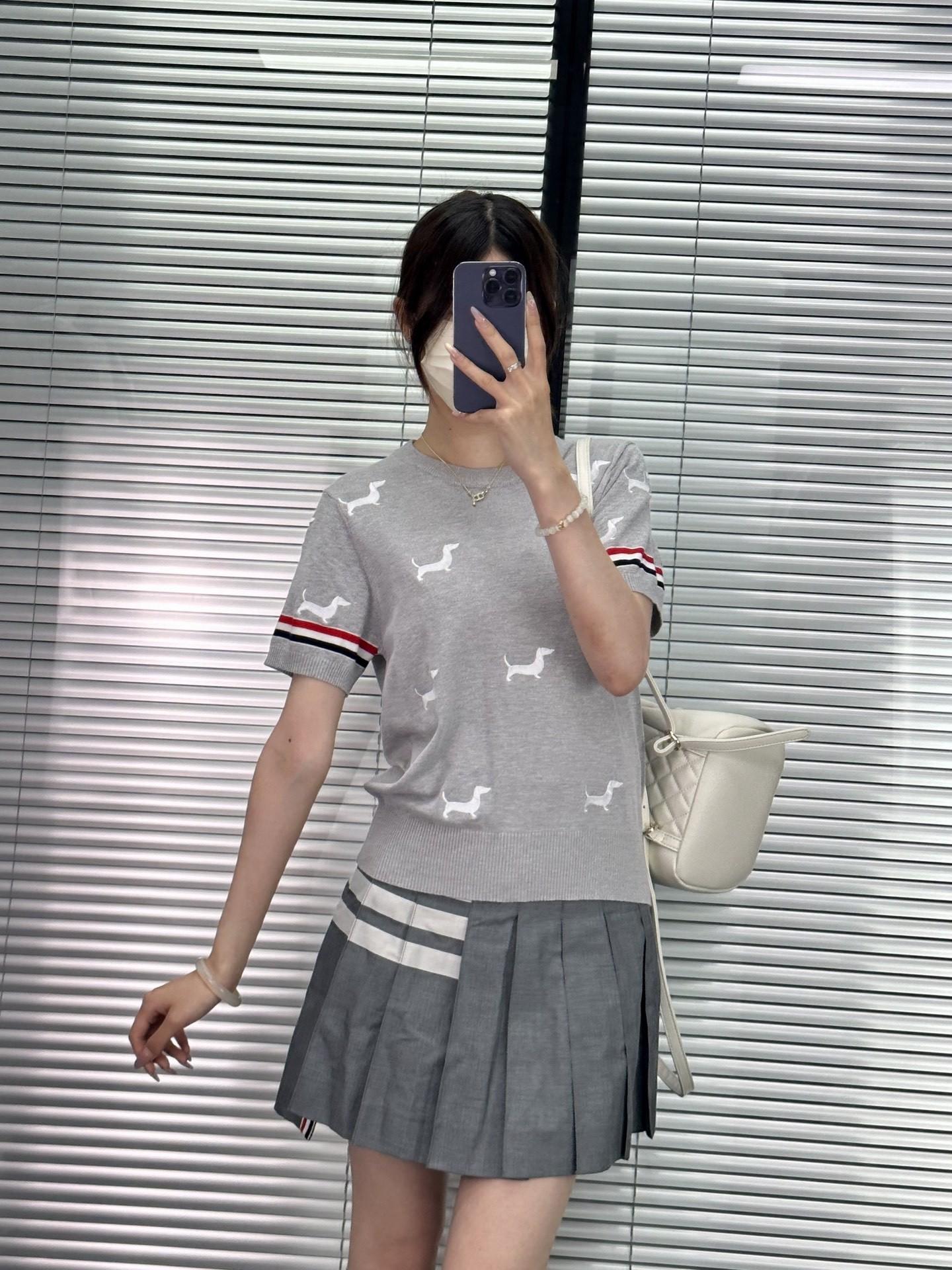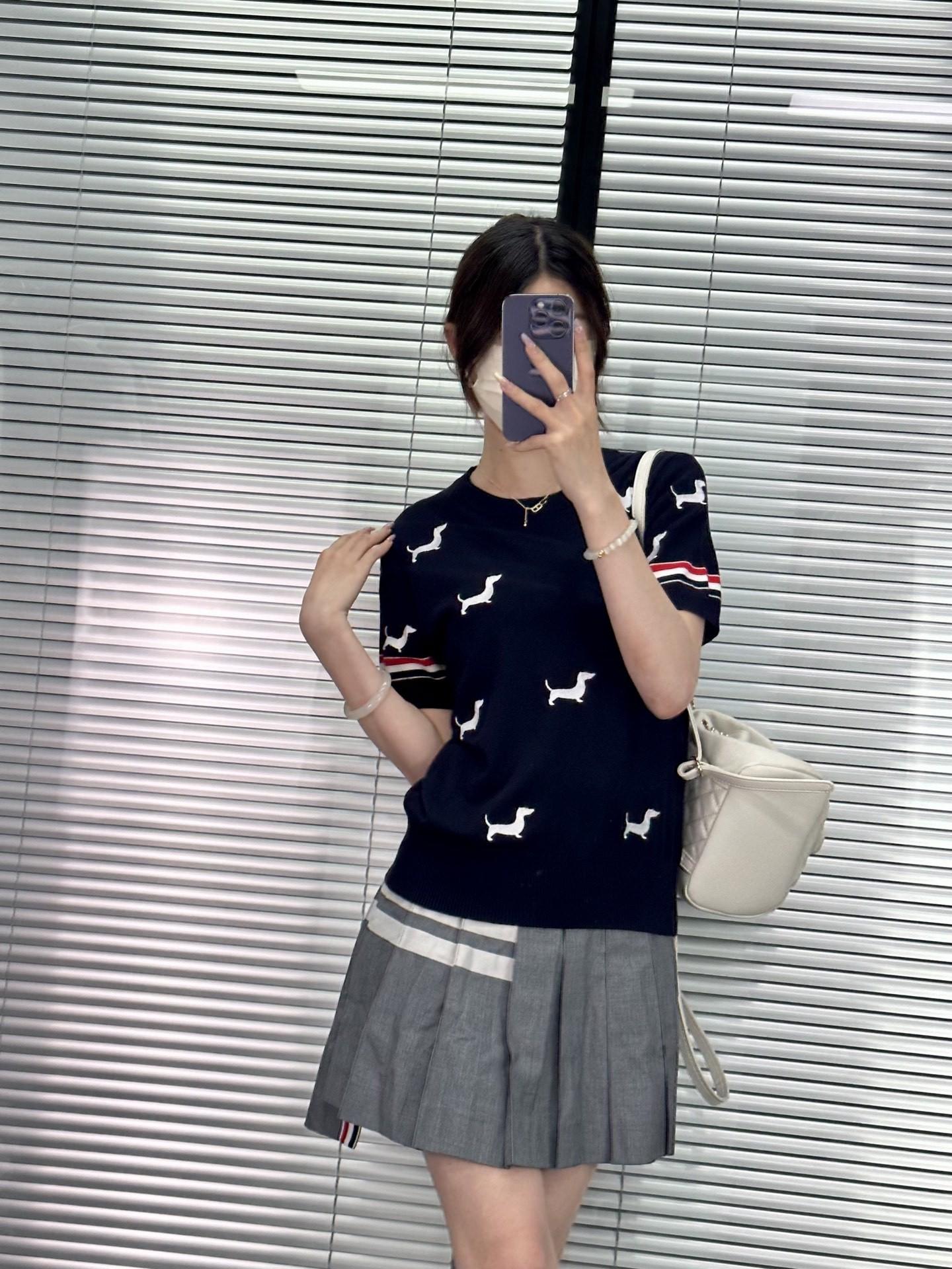 Tb Vendas Diretas de Fábrica Versão Alta Verão Novo Regata Feminina Bordada de Corpo Inteiro com Filhote de Cachorro de Tecido Dupla Face de Manga Curta