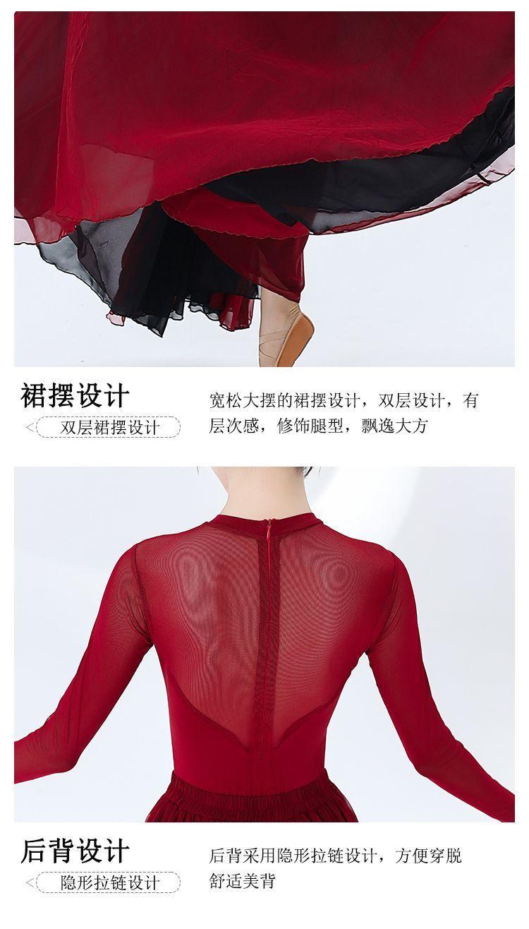 Roupas de Prática de Balé, Exames de Arte de Estudantes de Dança, Collants Borgonha, Macacões de Ginástica Yoga Aérea, Conjuntos de Manga Comprida e Saias