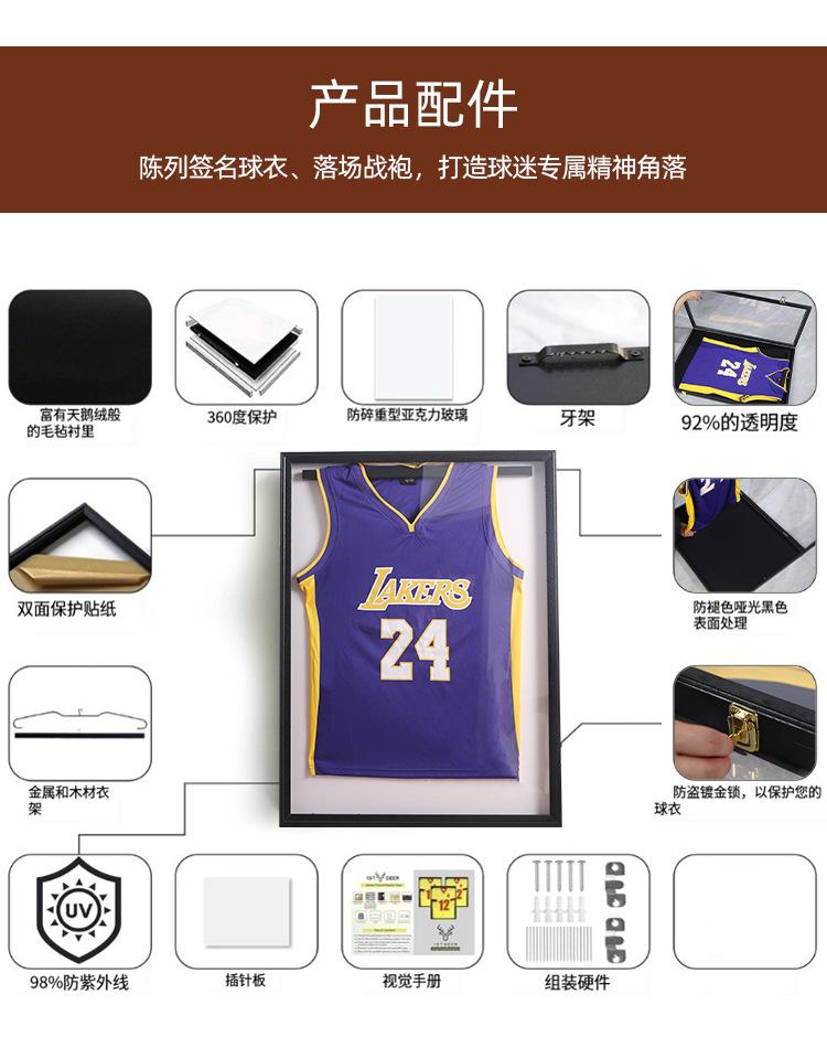 Moldura para Exposição de Camisas Transfronteiriças Emoldurada Basquete Futebol Camisa Autografada Coleção Comemorativa Tamanho Grande Pendurar na Parede Porta-Retrato Atacado