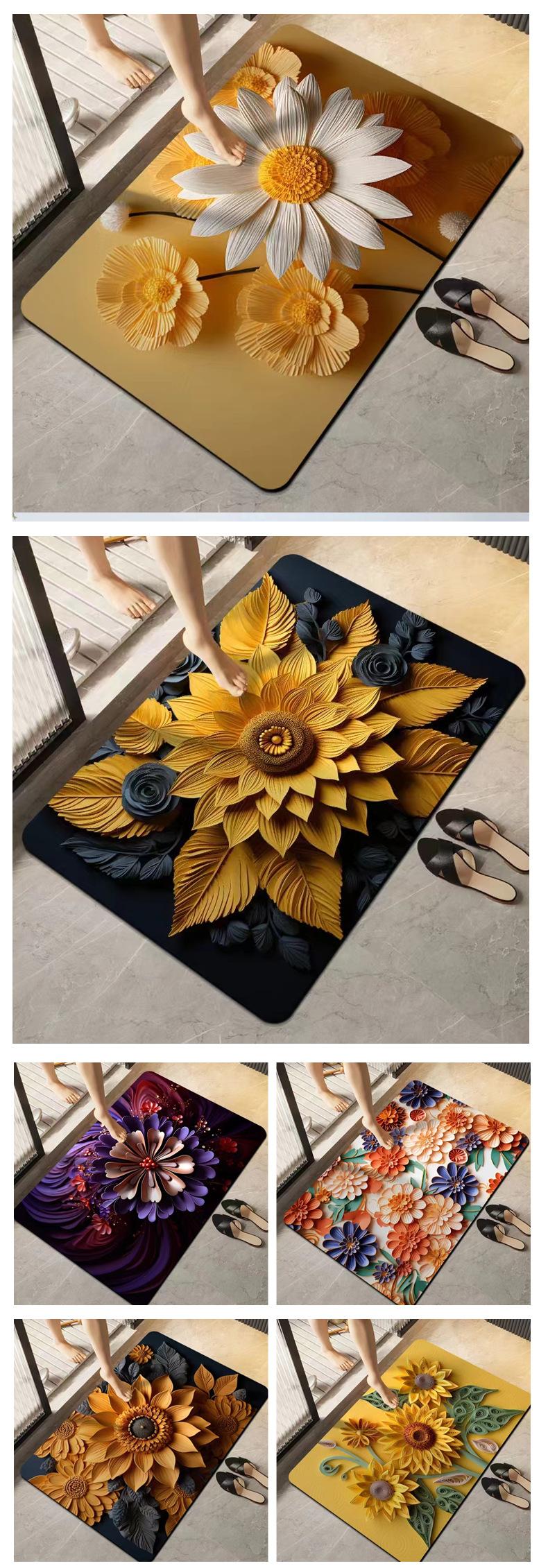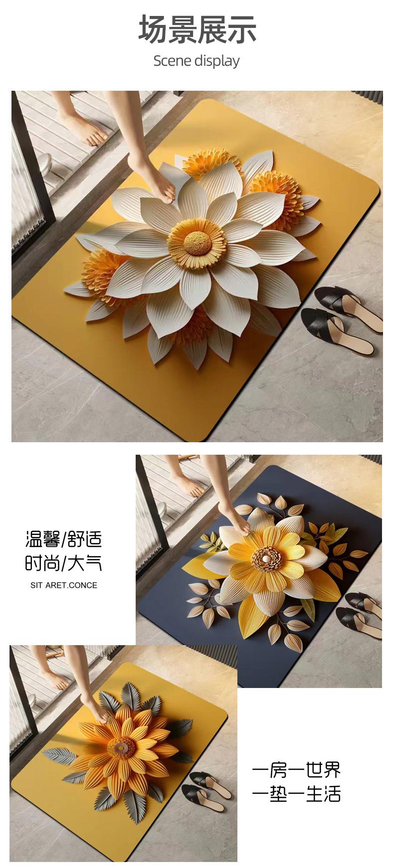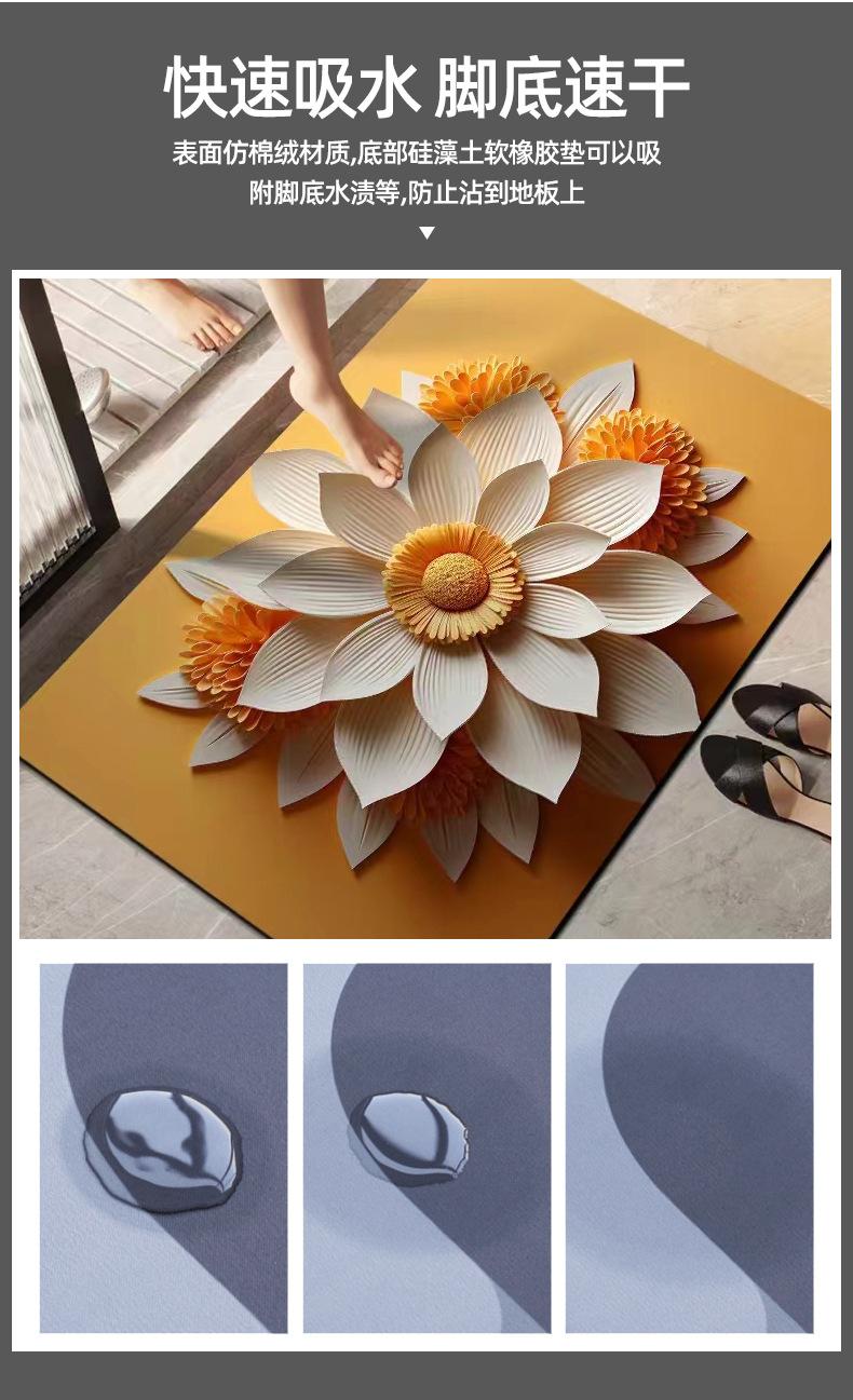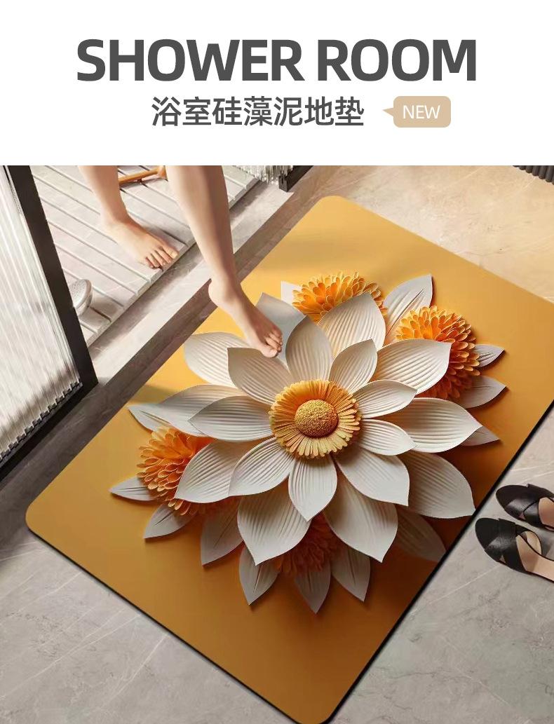 Tapete de Lama Diatomácea de Flor Tridimensional 3D Transfronteiriço Banheiro Antiderrapante Absorvente Tapete de Pé Doméstico Resistente à Sujeira Tapete Resistente ao Desgaste