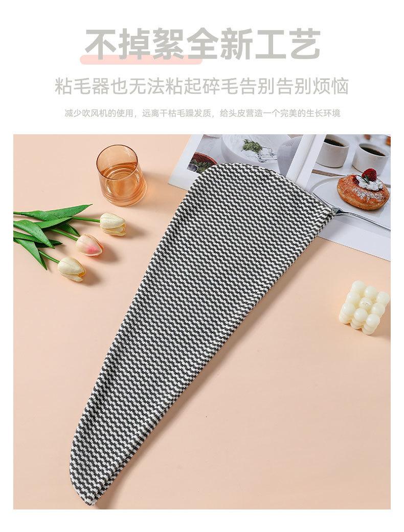 Toalha de Cabelo Seco Listrada em Preto e Branco Personalizada pelo Fabricante para Mulheres Turbante de Microfibra Absorvente de Água de Camada Dupla Touca de Banho Toalha de Secagem Rápida para Shampoo