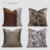 Almofada de sofá marrom bronzeado de luxo leve e sofisticada, almofada de cama para quarto modelo de hotel e villa, combinação multi-conjunto