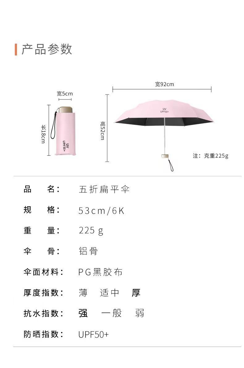 Guarda-chuva de Sol Dobrável 50% Bolso Plano Ultraleve Feminino Portátil Quebra-sol Borracha Preta Protetor Solar Proteção UV Guarda-chuva