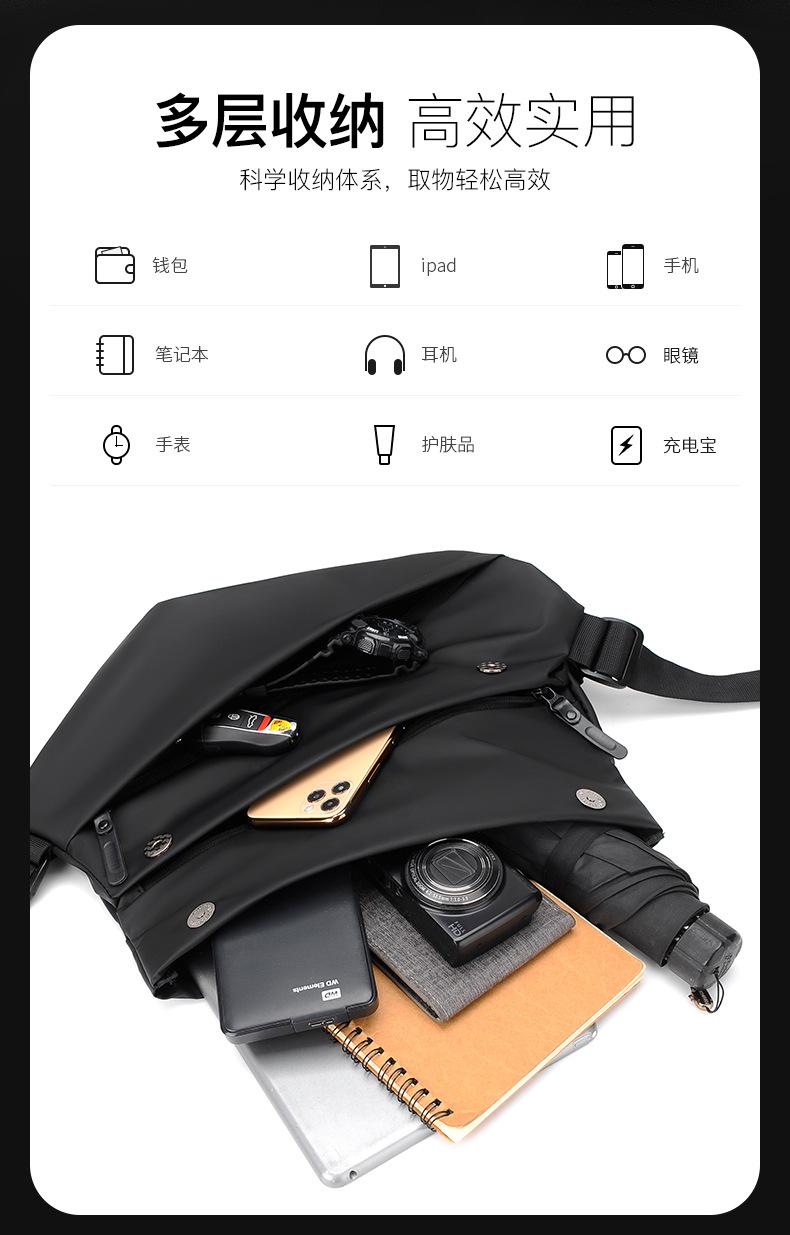 Bolsa de Peito Masculina Juvenil Moda Nova Versátil Moderna Casual Transversal Cor Sólida Couro PU Bolsa Impermeável Bolsa de Ombro Bolsa Masculina
