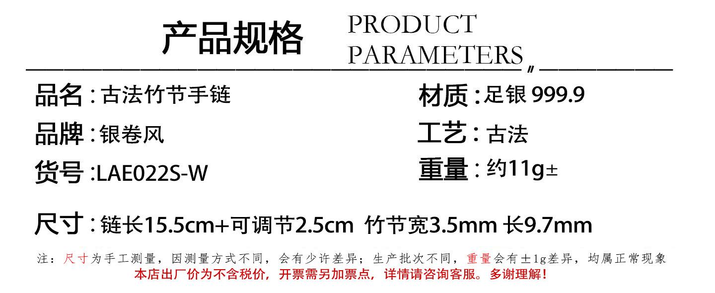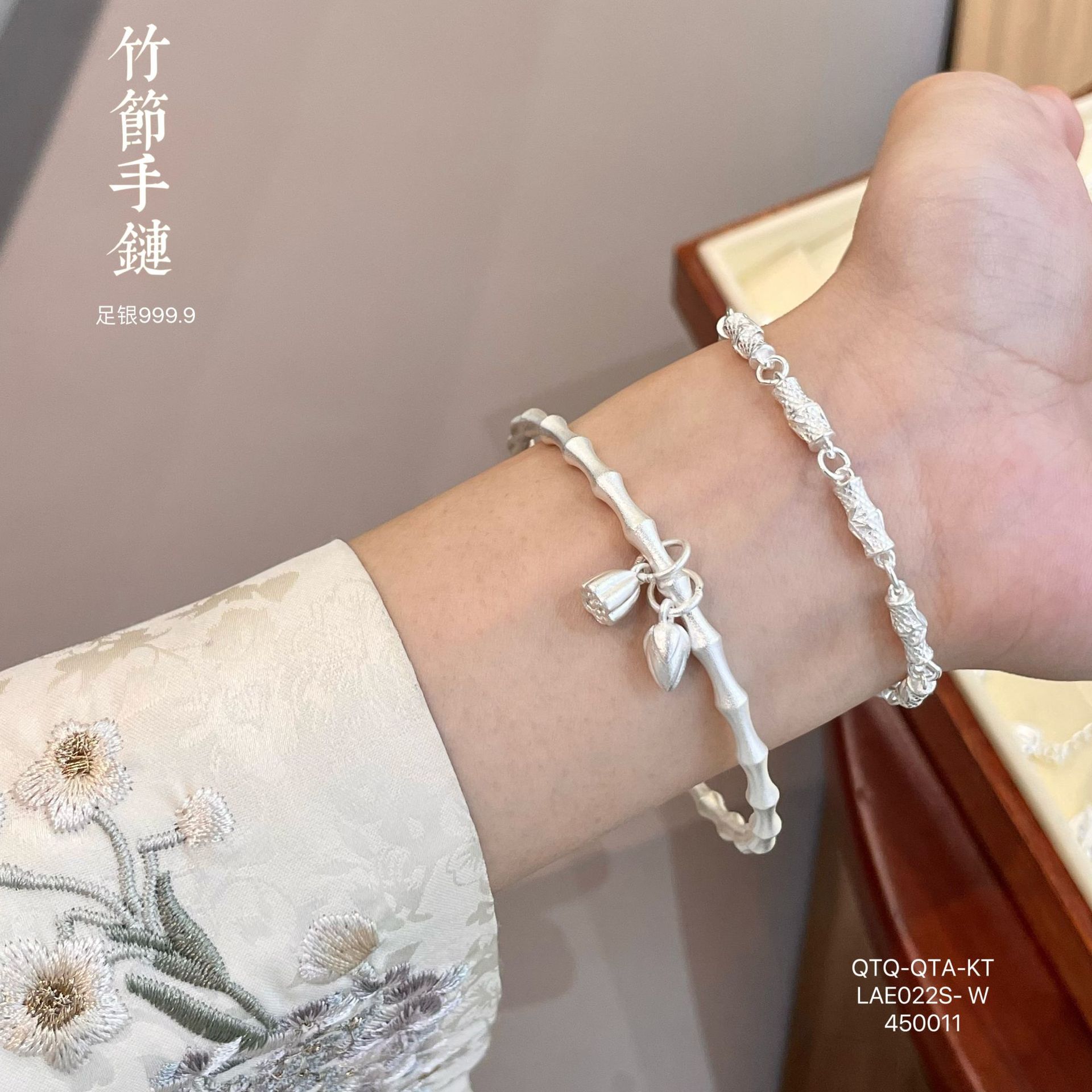 Pulseira Prata Pura 9999 Nó de Bambu Antigo Pulseira de Prata Esterlina Passo a Passo Novo Design de Nicho Presente de Formatura Atacado