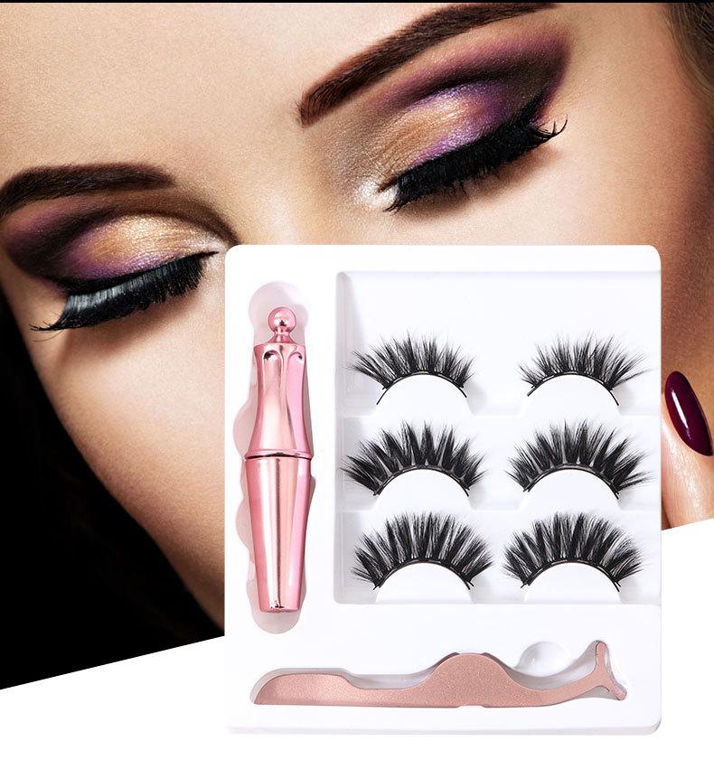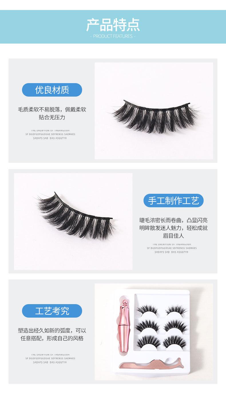 Cílios postiços 3D de fibra química três pares de cílios magnéticos tridimensionais multicamadas transfronteiriços 3 pares de cílios atacado de fábrica