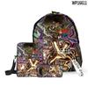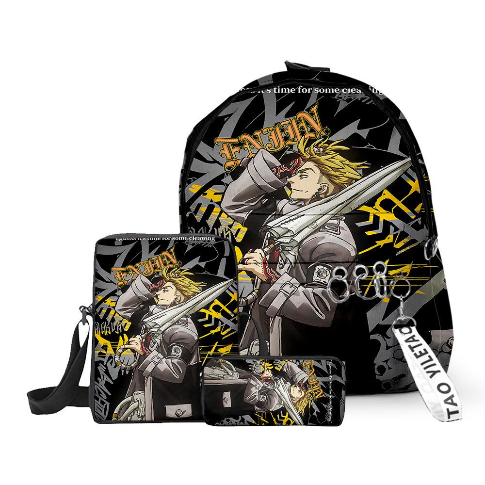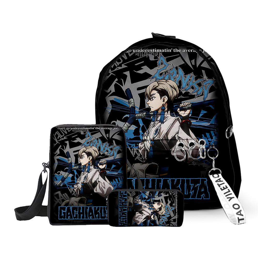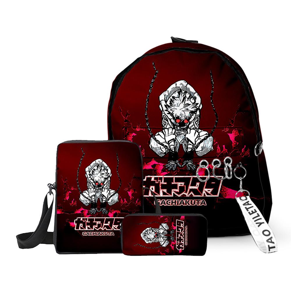 3D Nova Animação Waste Abyss War Ghost Gachiakuta Estampada Bolsa de Ombro de Três Peças Estojo de Lápis Mochila