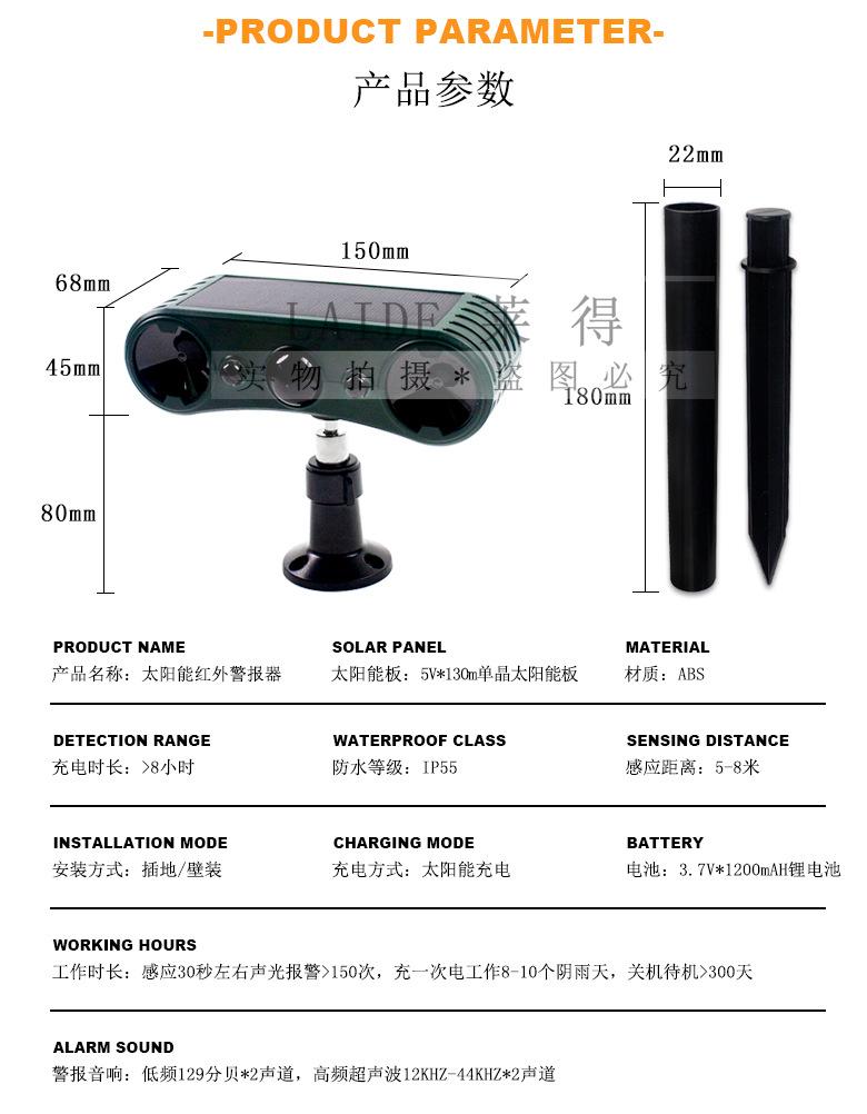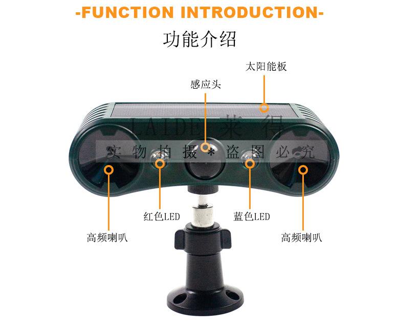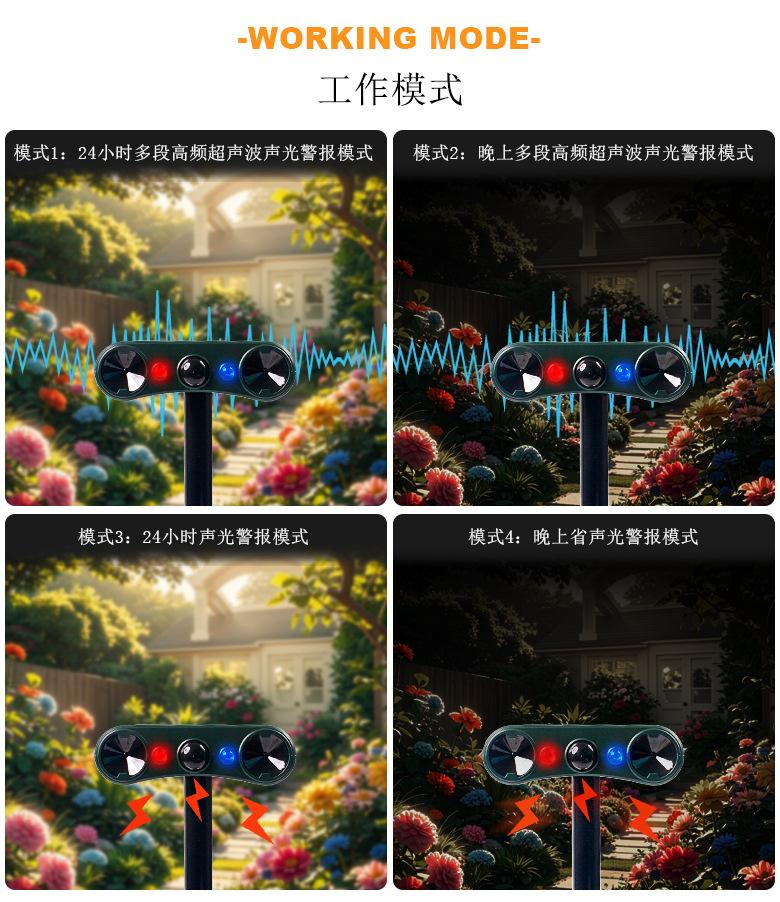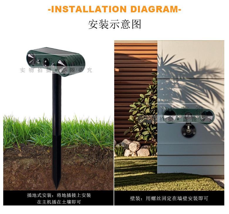 Repelente de Animais Ultrassônico Alarme Solar Jardim Quintal Gramado Traseiro