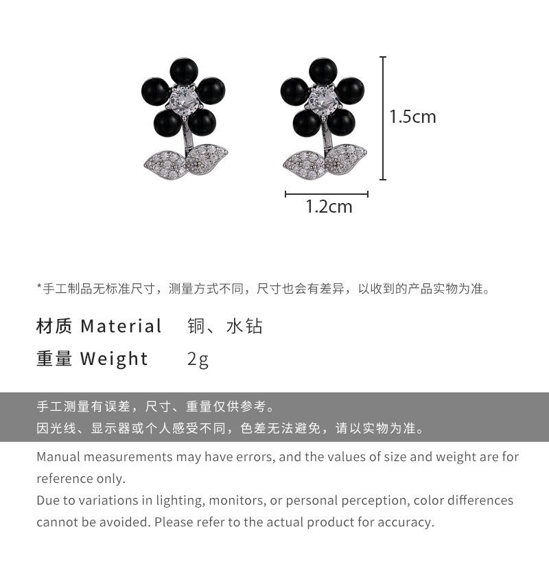 Doce Cool Estilo Personalidade Flor Negra Brincos Elegantes Micro-incrustados Zircon Niche Design Sense Flower Commuter All-match Brincos