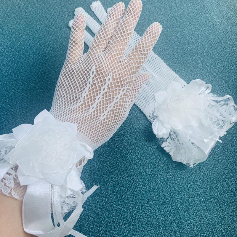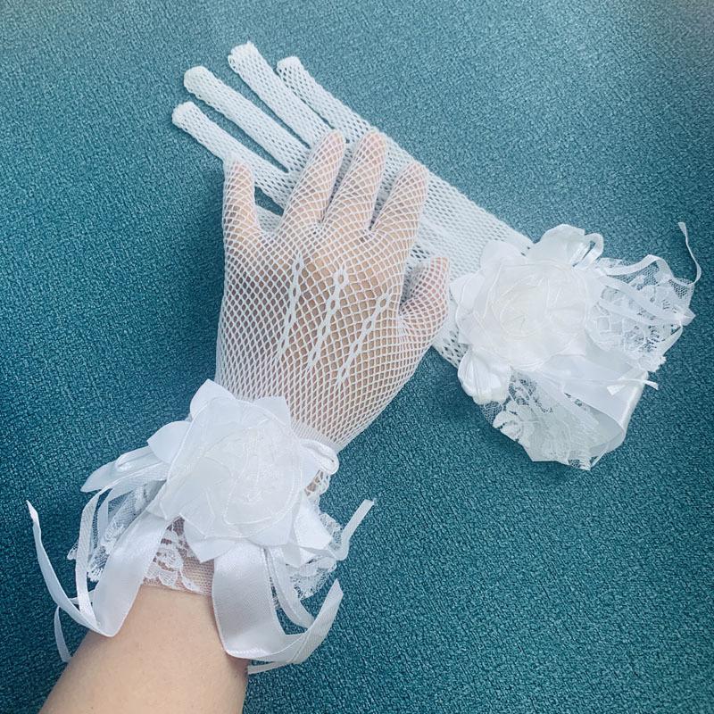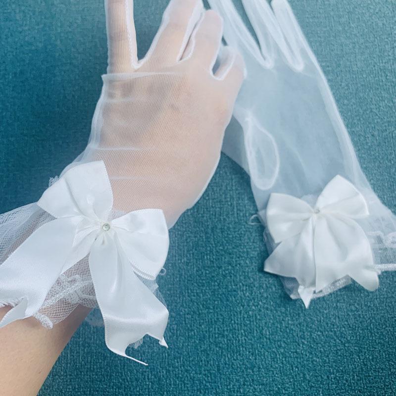 Novas Luvas de Noiva para Vestido de Casamento Laço de Gaze com Dedos Luvas Curtas Acessórios para Vestido de Casamento
