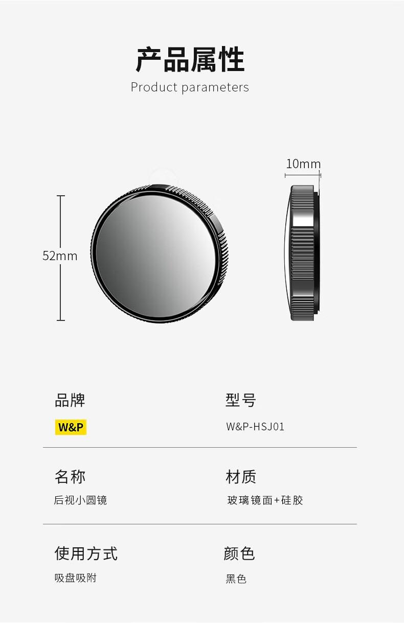Espelho Retrovisor W&P Espelho Pequeno Redondo Espelho Retrovisor de Carro Artefato de Armazenamento Auxiliar Ponto Cego Ângulo Amplo 360 Graus