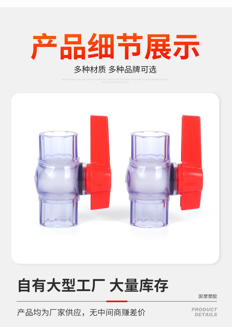 Válvula de Esfera Transparente de PVC Chave de Válvula Aquário Tanque de Peixes Acessórios de Válvula Simples 25/32/40 Chave de Válvula de Esfera Padrão