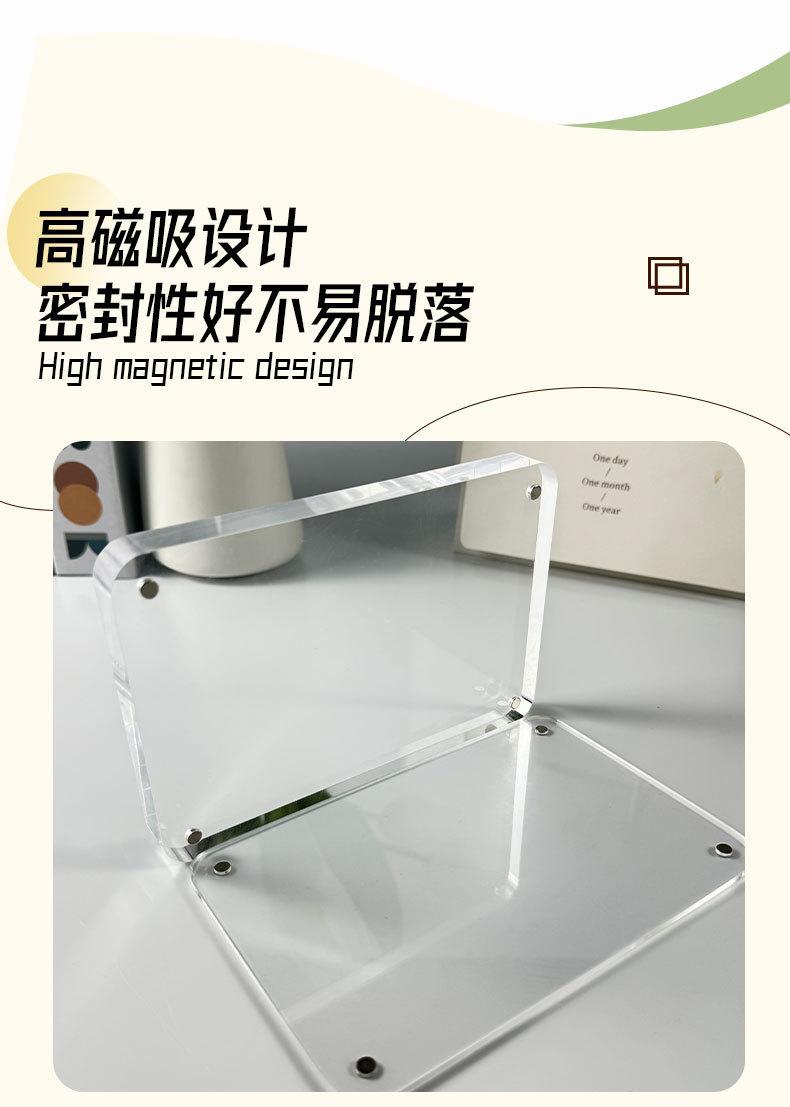 Porta-retrato acrílico personalizado Tijolo de cartão magnético forte Sucção magnética Mesa de mesa Suporte acrílico para cartão Porta-retrato transparente de dupla face
