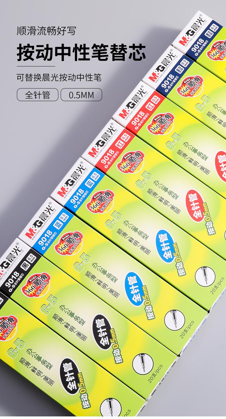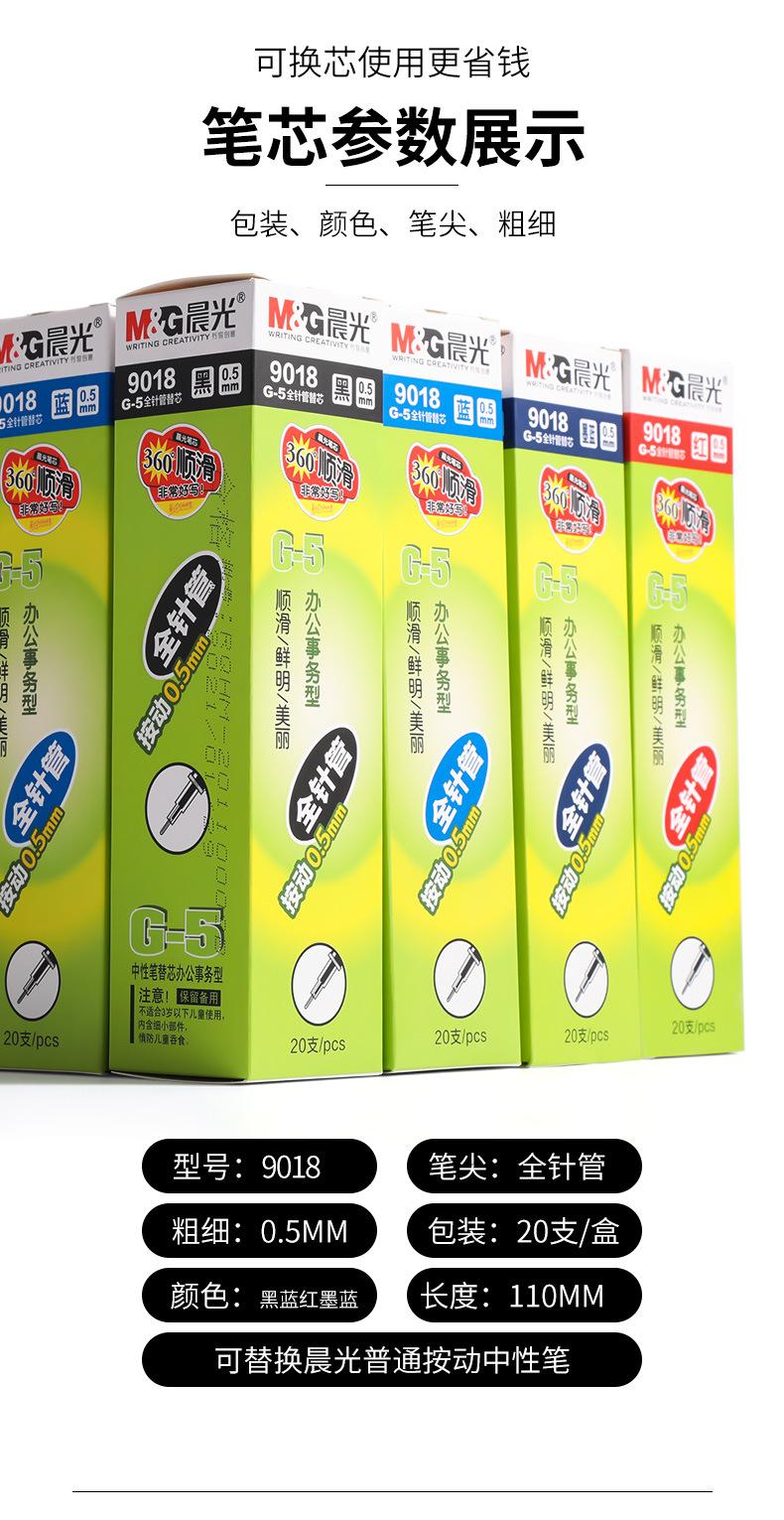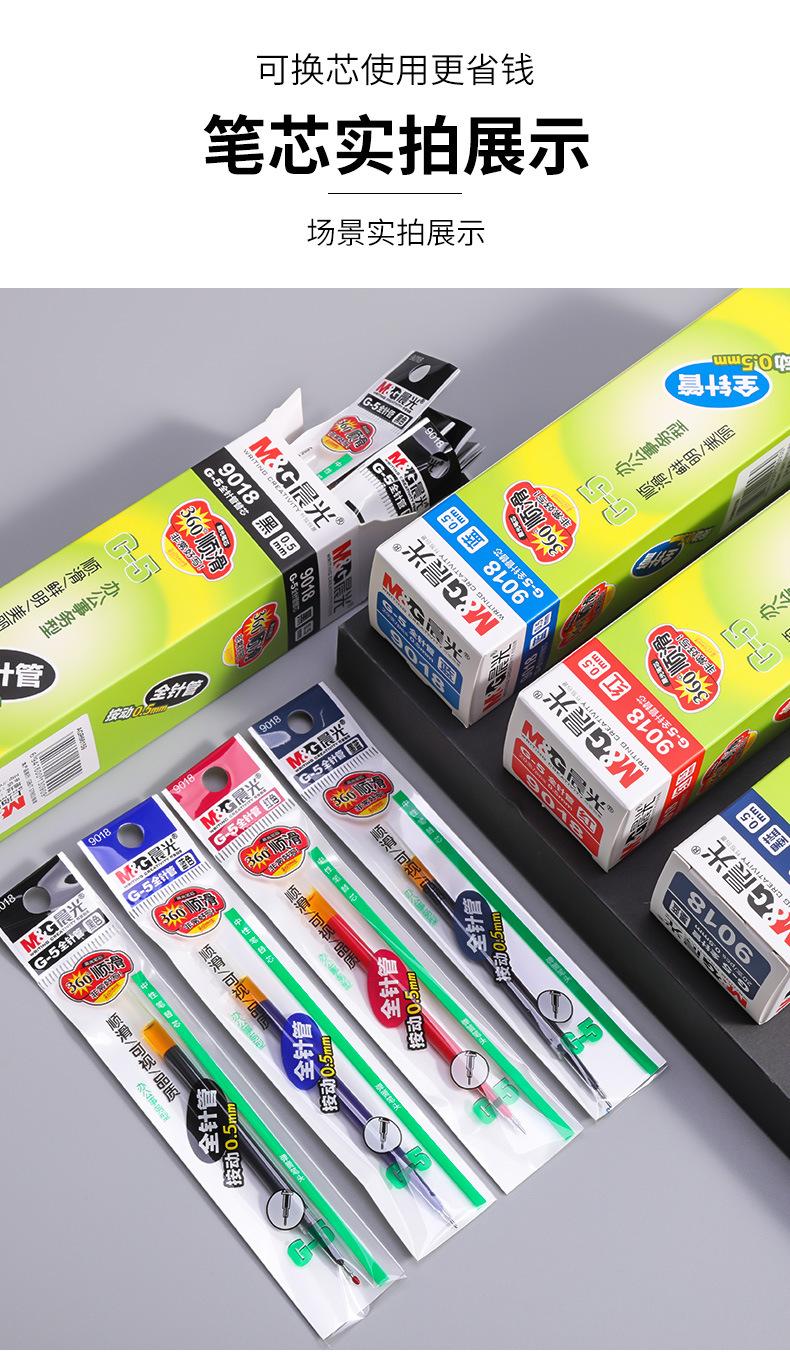 M&G Refil Tipo Pressão Ponta Agulha Fina 0.5mm Preto Vermelho Uso Estudantil Escritório Tipo Pressão Refil Neutro 9018