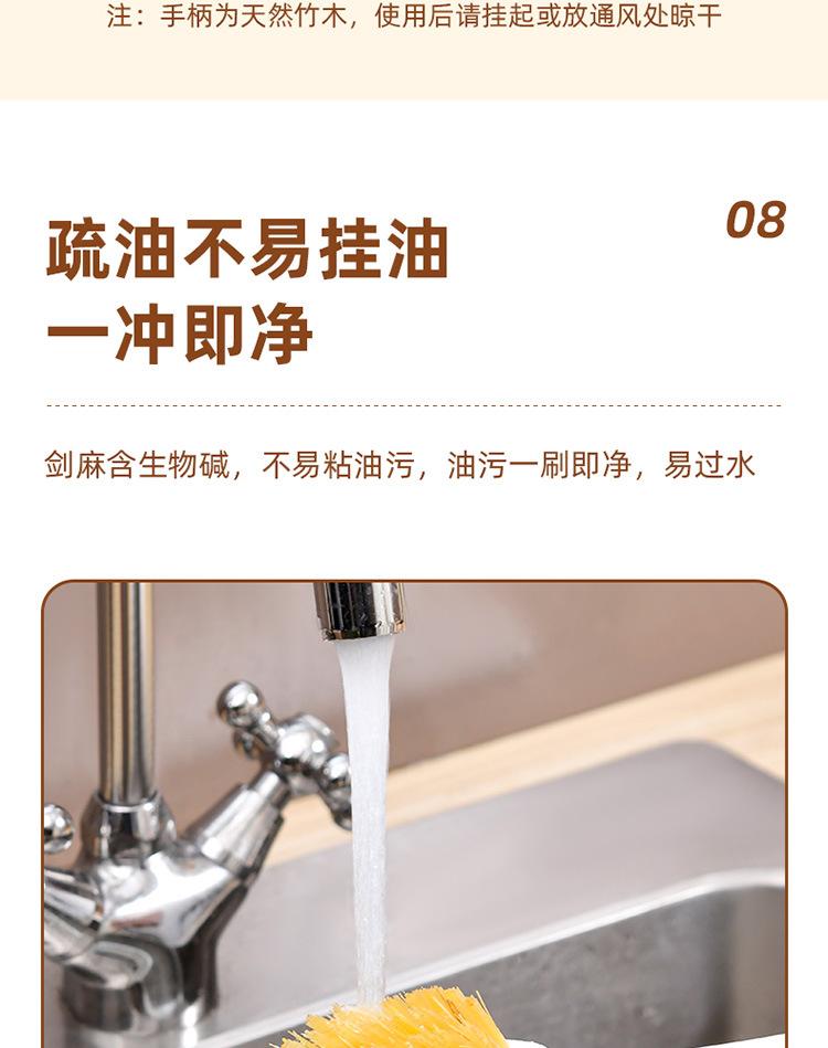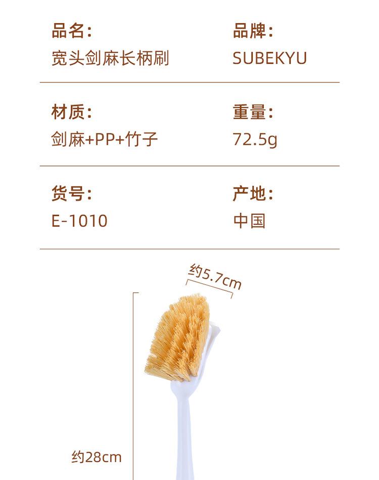Subekuy Nova escova de sisal com cabo longo e cabeça larga, escova para panelas sujas, escova para fogão, escova de limpeza doméstica