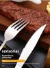 Faca de bife profissional com lâminas serrilhadas de precisão para corte sem esforço. Feito de aço inoxidável com cabos ergonômicos. Pode ir à lava-louças e resistente à ferrugem - perfeito para jantares de bife, churrascos e refeições gourmet. Inclui estojo de armazenamento de luxo.