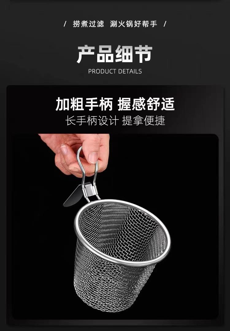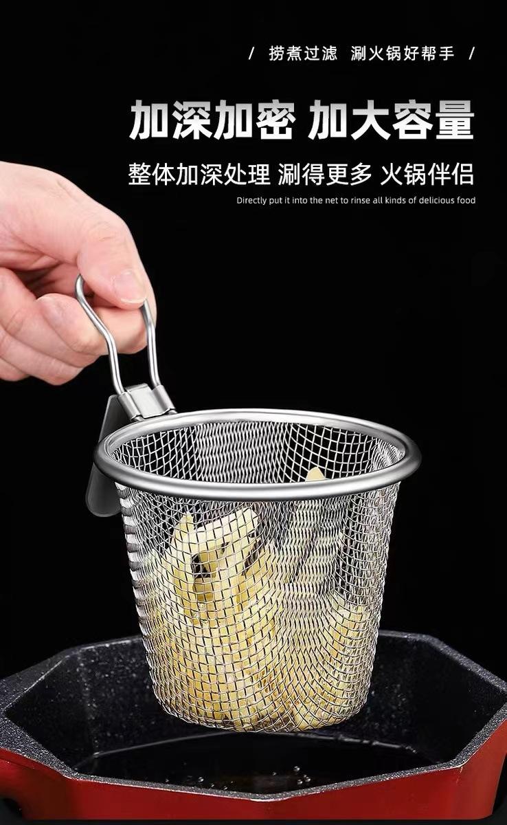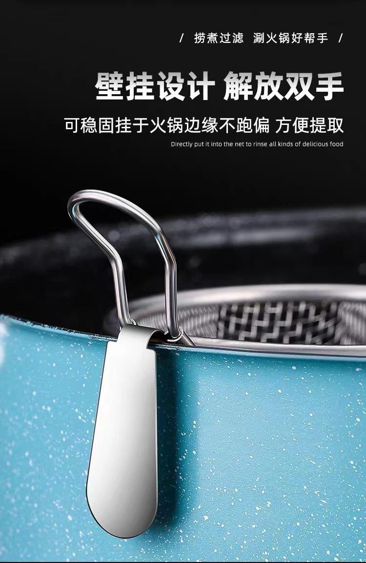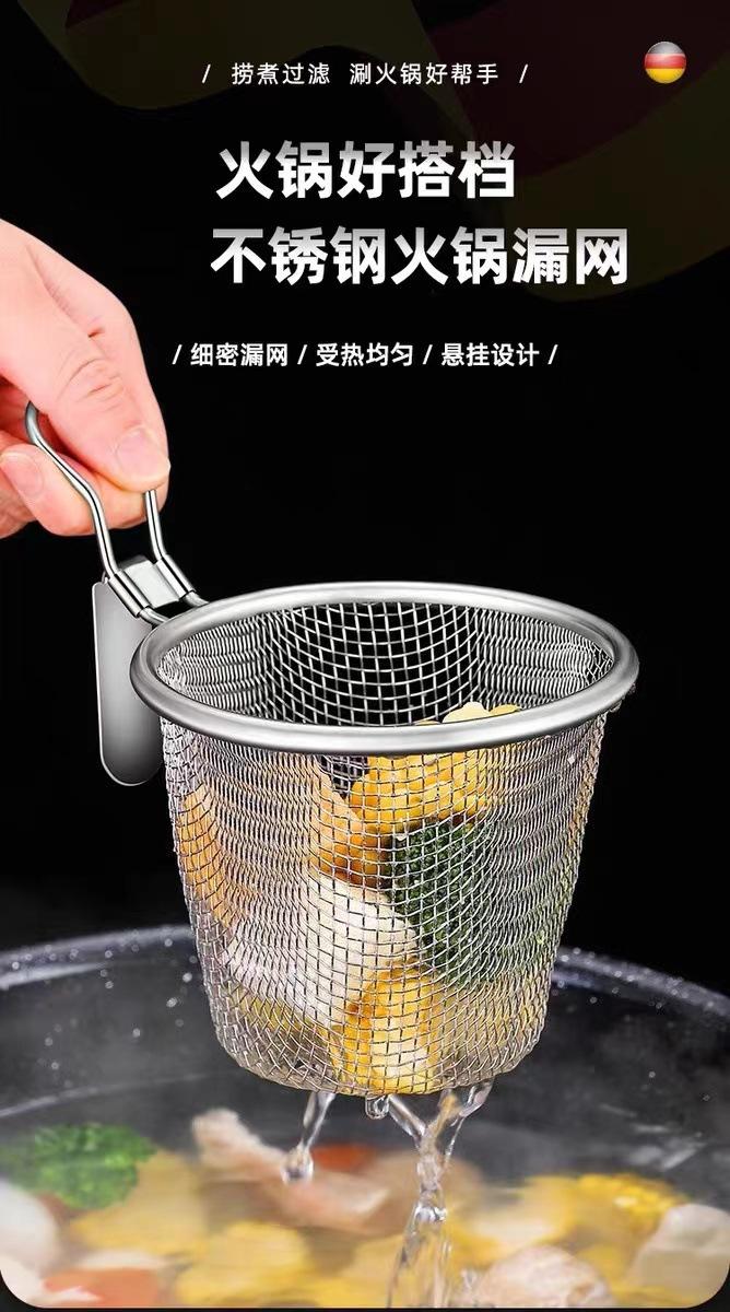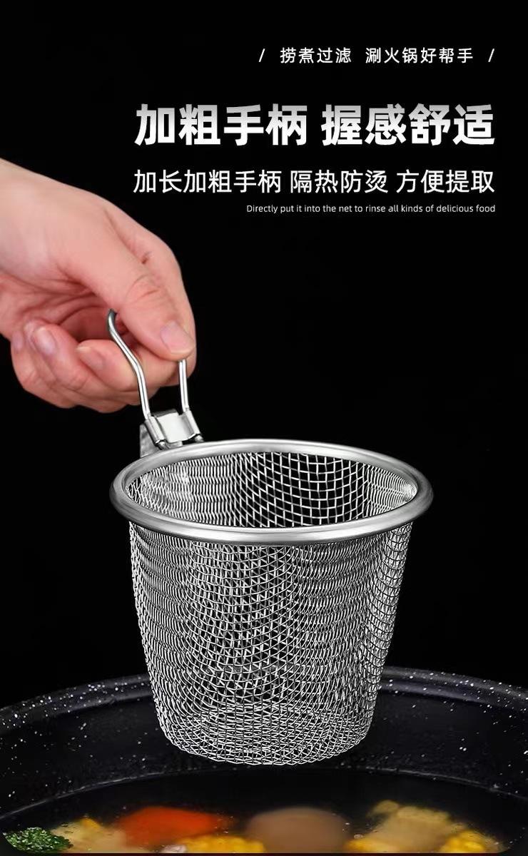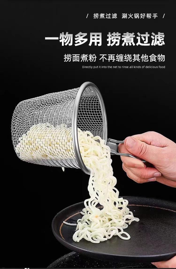 Escorredor Especial para Hot Pot de Carne Doméstico com Gancho Colher de Macarrão Hedge de Pó Cesto de Malha Antiderrapante para Fritura Cesto Antiderrapante de Aço Inoxidável
