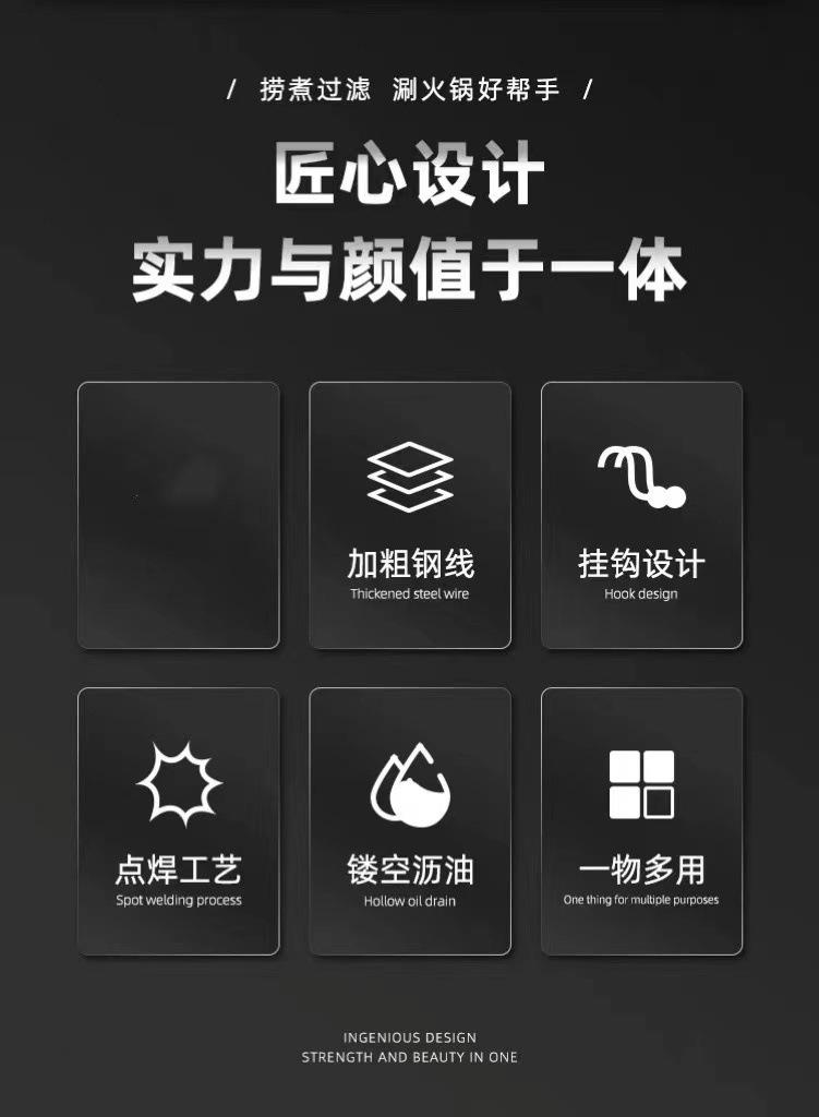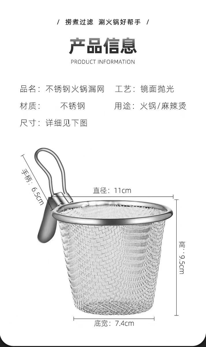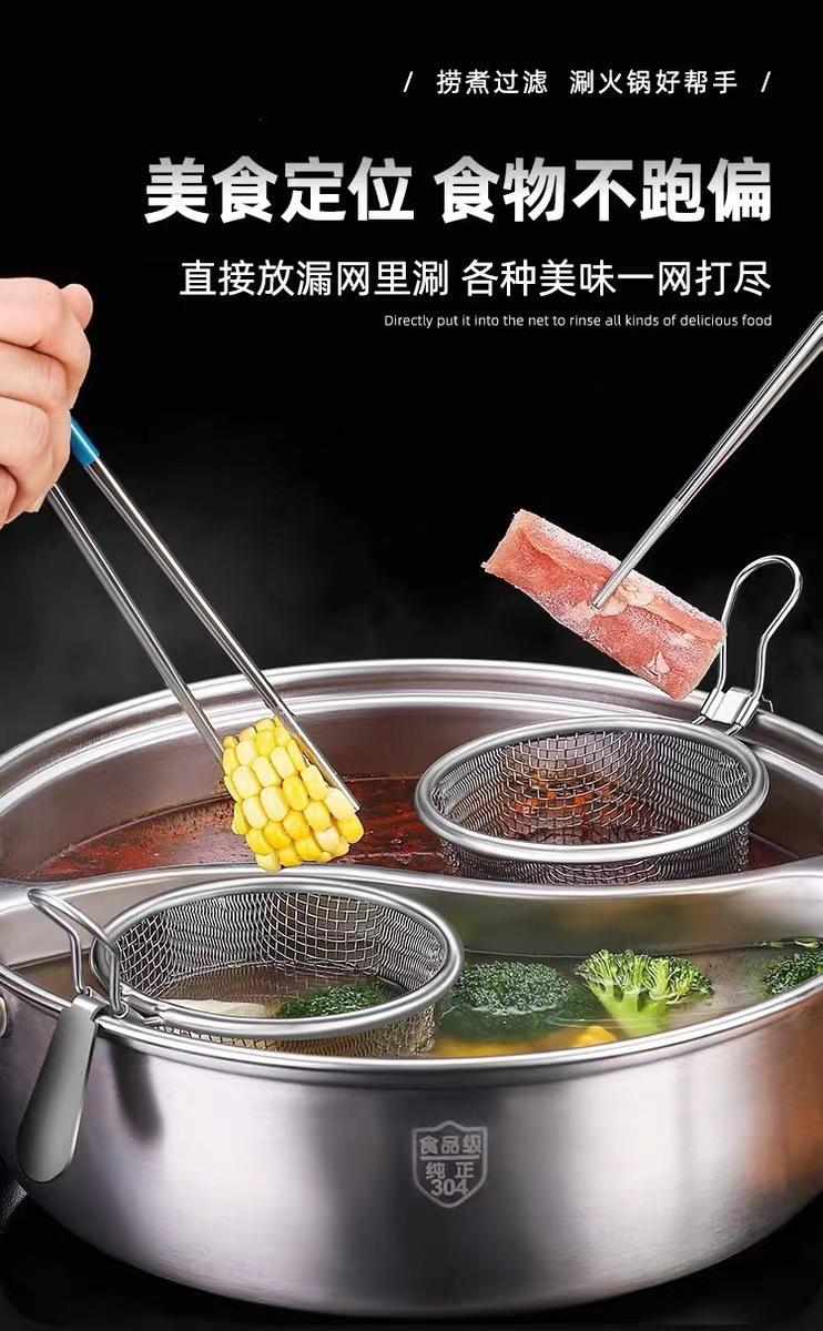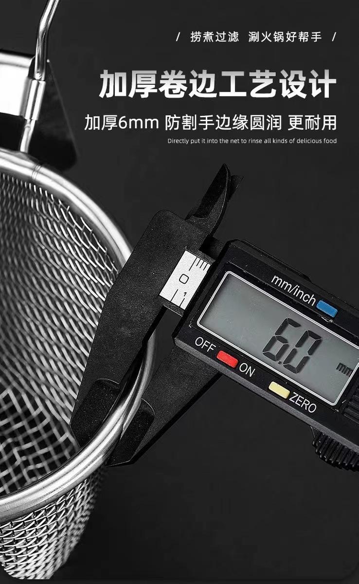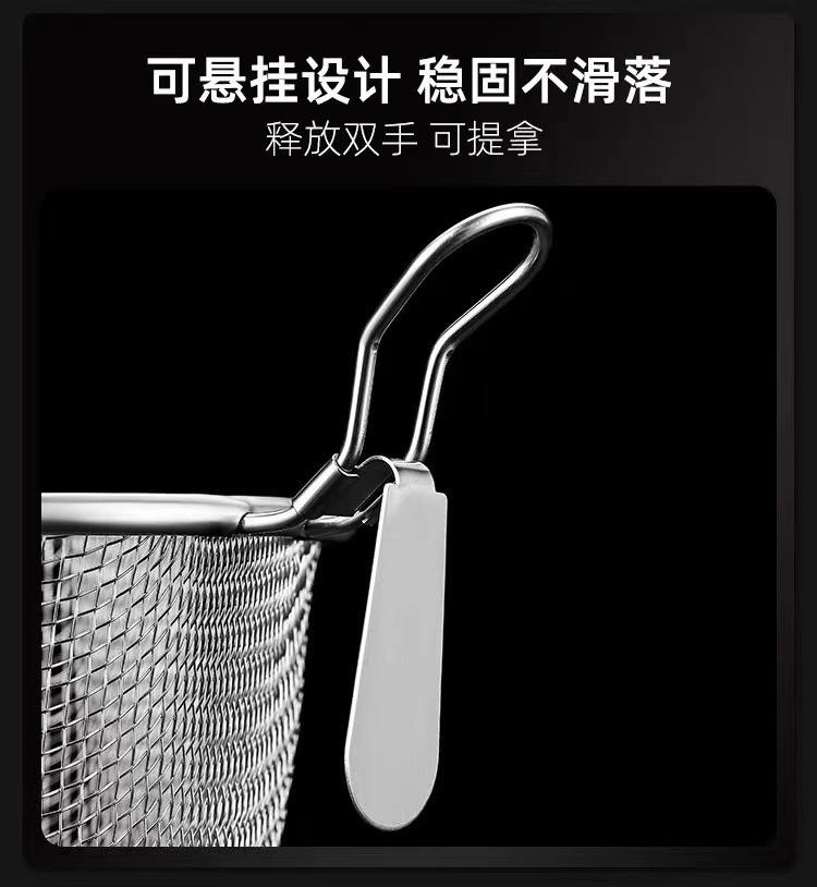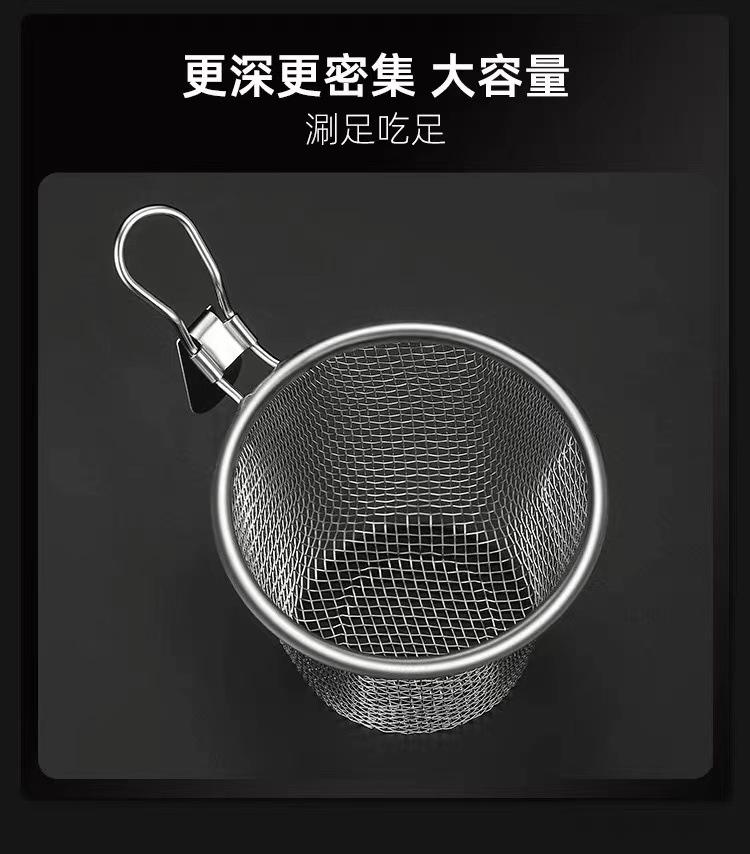 Escorredor Especial para Hot Pot de Carne Doméstico com Gancho Colher de Macarrão Hedge de Pó Cesto de Malha Antiderrapante para Fritura Cesto Antiderrapante de Aço Inoxidável