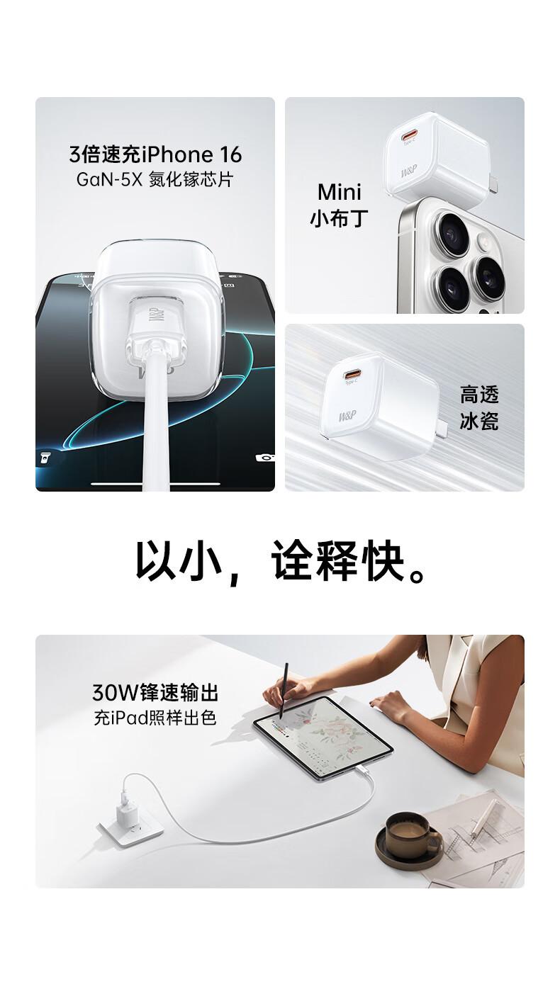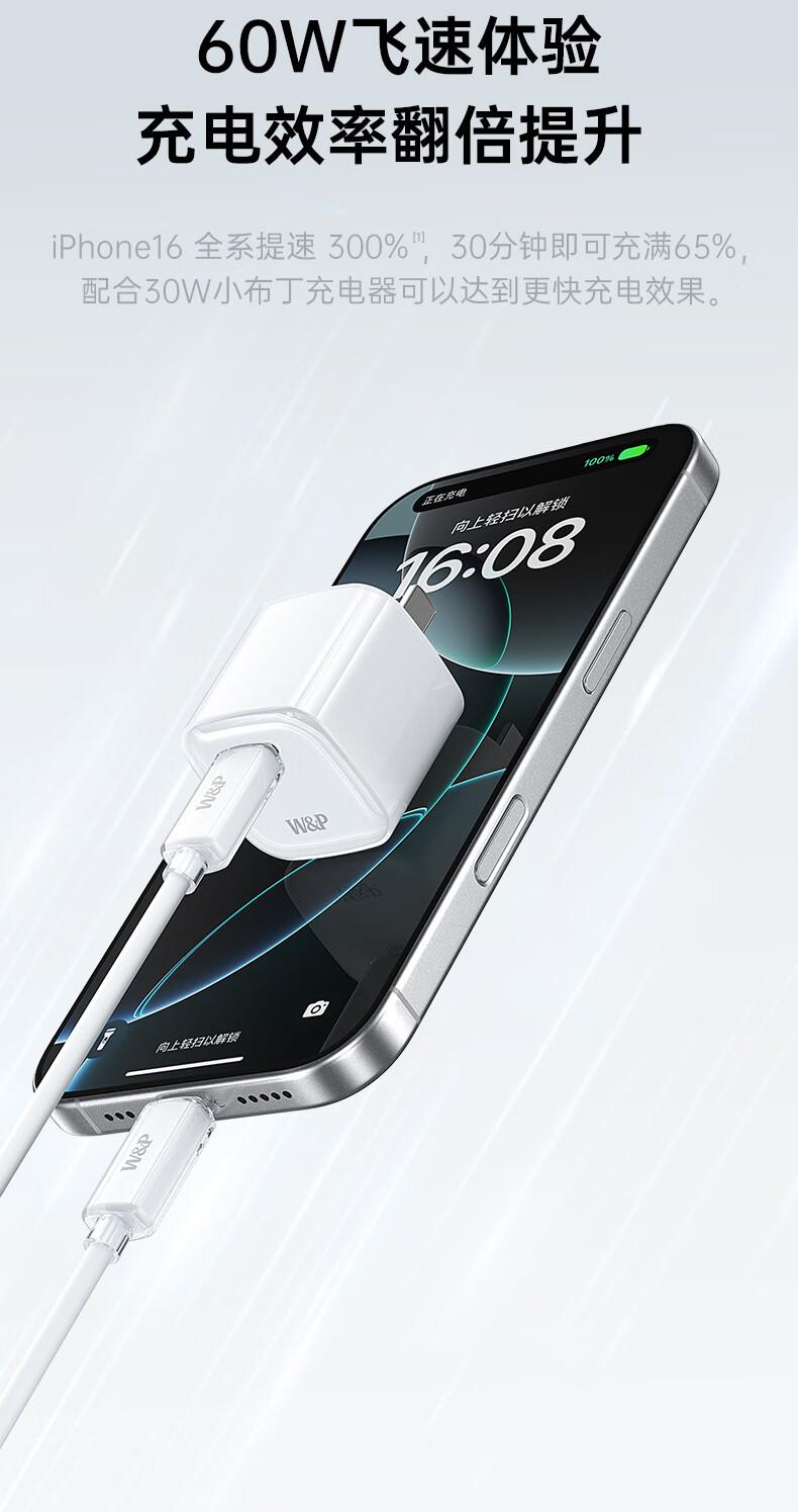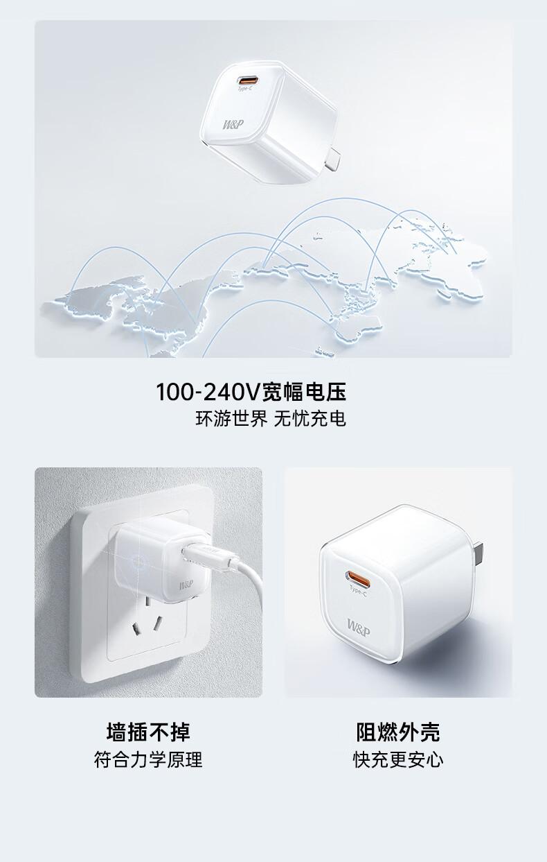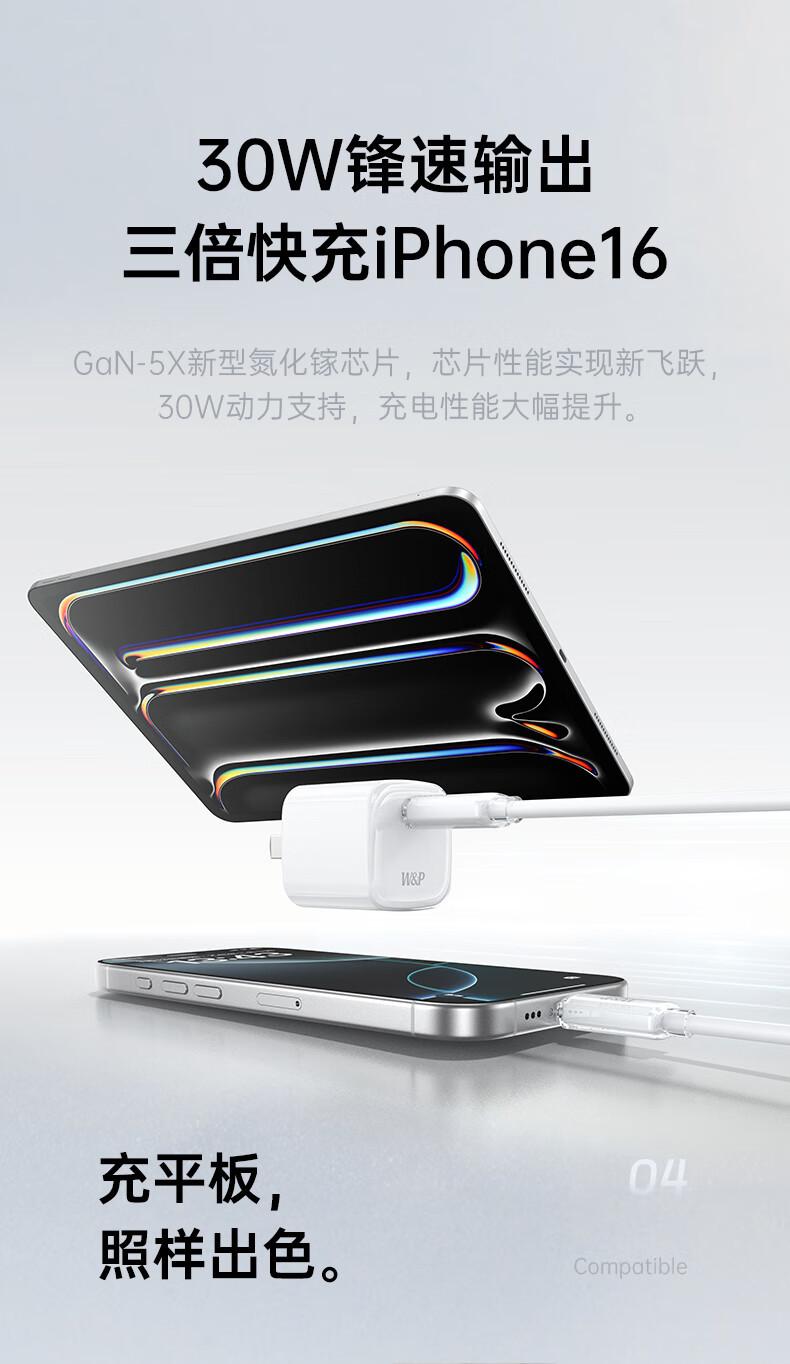 W & P Apple 16 Carregador PD30W Cabeça de Carregamento de Nitreto de Gálio 20W para iPhone16promax15/14A