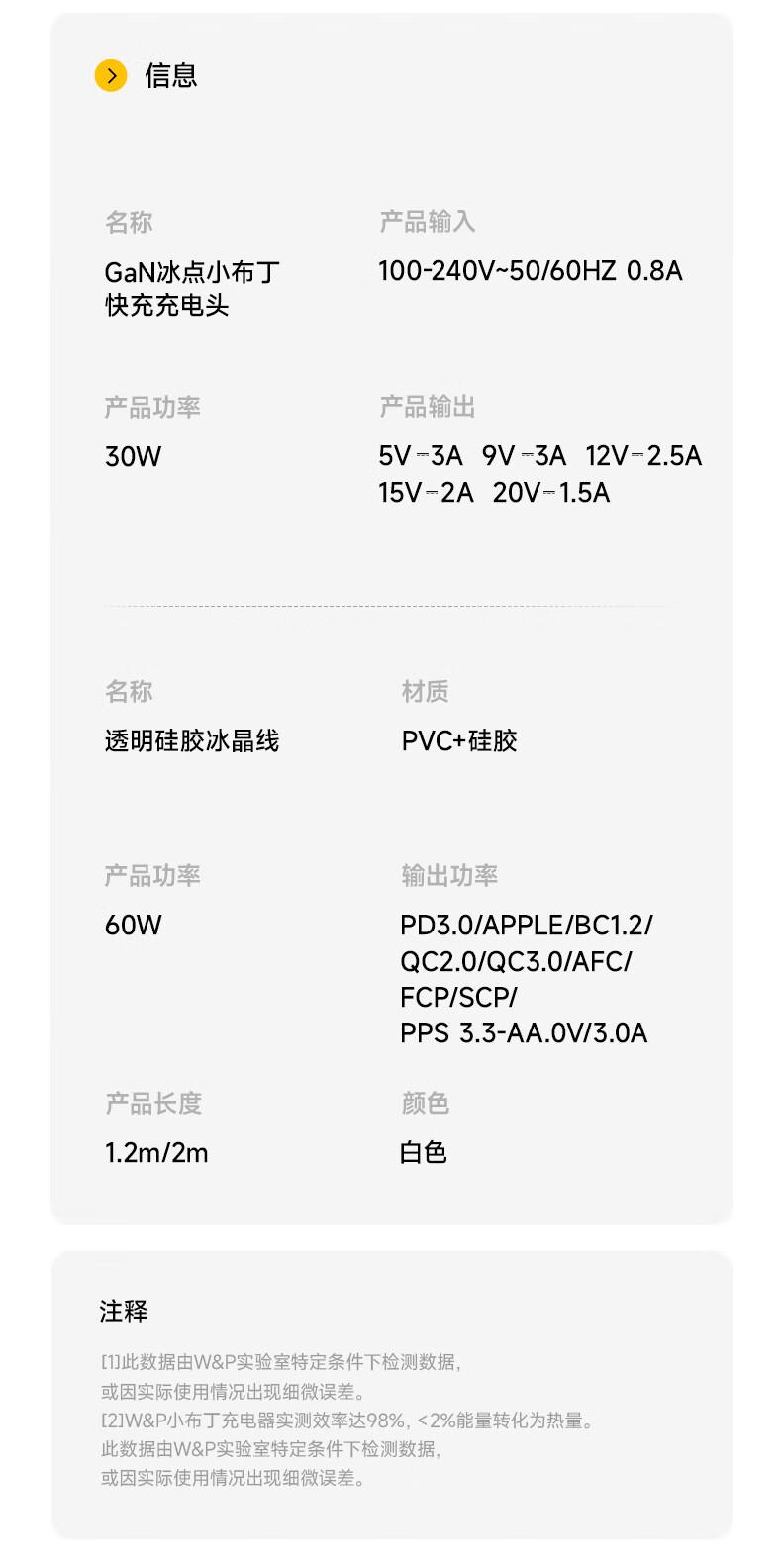 [ice white] 30w gallium nitride power adapter, [double c customization] 30w gallium nitride super charging hea...