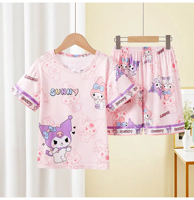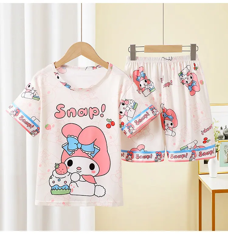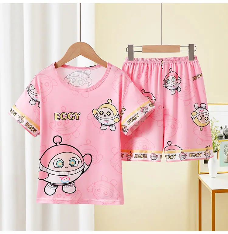Comércio exterior pijamas infantis verão novas meninas shorts de manga curta bonito meninas 'bebê médio e grande terno infantil homewear